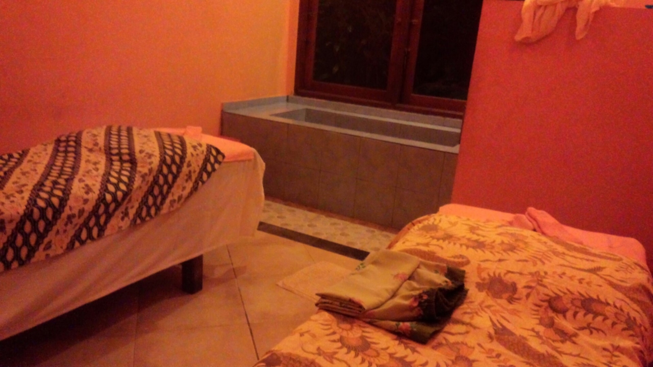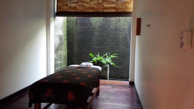 施術は半屋外でいい風が入ってくるし、奥の壁にお水が流れててその音や、時々聞こえる小鳥のさえずりなんかで、すごく癒される。