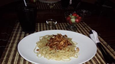 味濃いめで、チキンの皮ももうちょっとカリッとしてほしいところで、私らにはちょっと口に合わないかな。