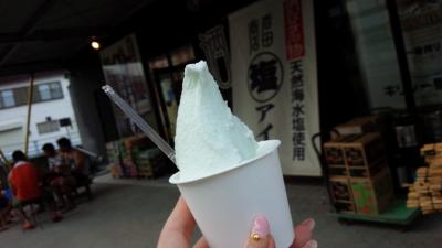 それはラッキーだったようで、入浴後、温泉向かいの岩田商店で塩アイス食べてたら、地元の人や観光客がコンスタントに温泉に入ってくのを目撃。