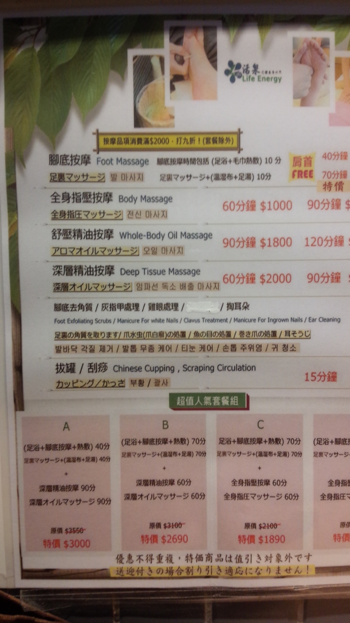 散々調べ、HP に「よくある施術士に寄っては…みたいな感想がないように」ダメな人はクビにしたとかあったため、全身マッサージ + 足裏を予約。