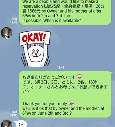 カーテン向こうには日本人オーナーと思わしき人が、カウンセリングしながらのマッサージをしているのが聞こえちゃったから、余計イマイチ感を感じてしまった。- 旅行時期