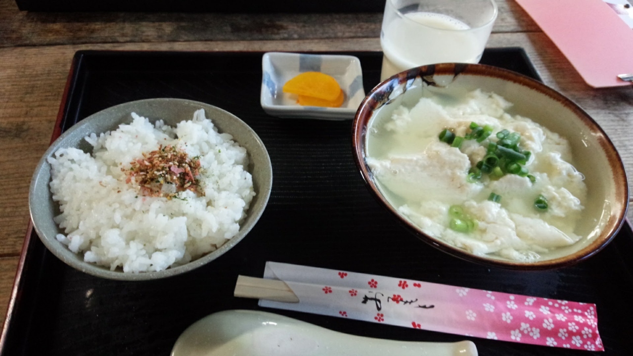 ごはんとお豆腐と漬物と豆乳という構成。