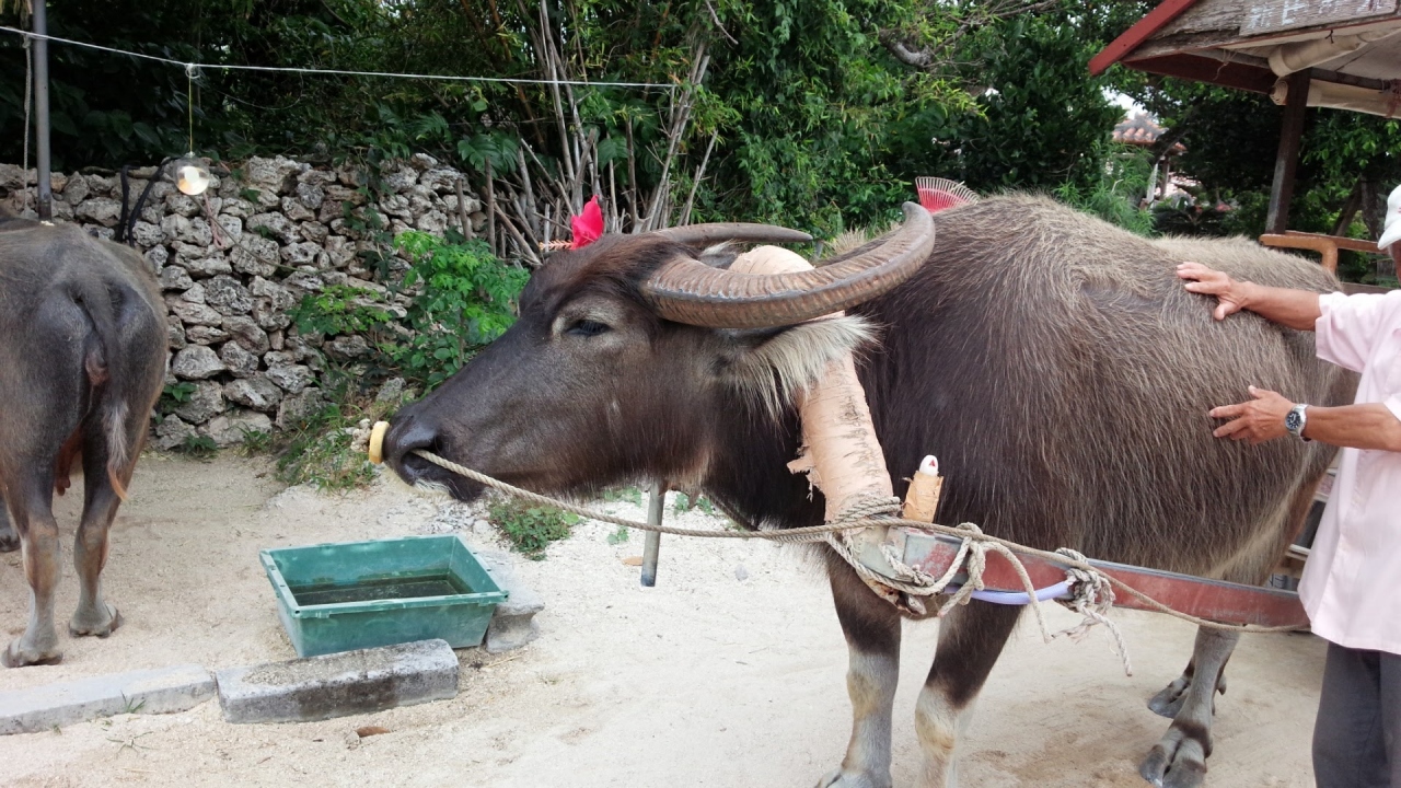 牛車が複数台待機しており、そのうちの若めの 1頭がなんともいえない声で鳴いててかわいい~。