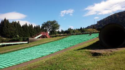 裏に芝生の広い公園があり、ソリが自由に借りられるソリ滑り台や長い滑り台、大人もくぐれるドカンとかもあり、運転に疲れた体を十分のびのびさせられる遊べるところが広いし楽しめる。