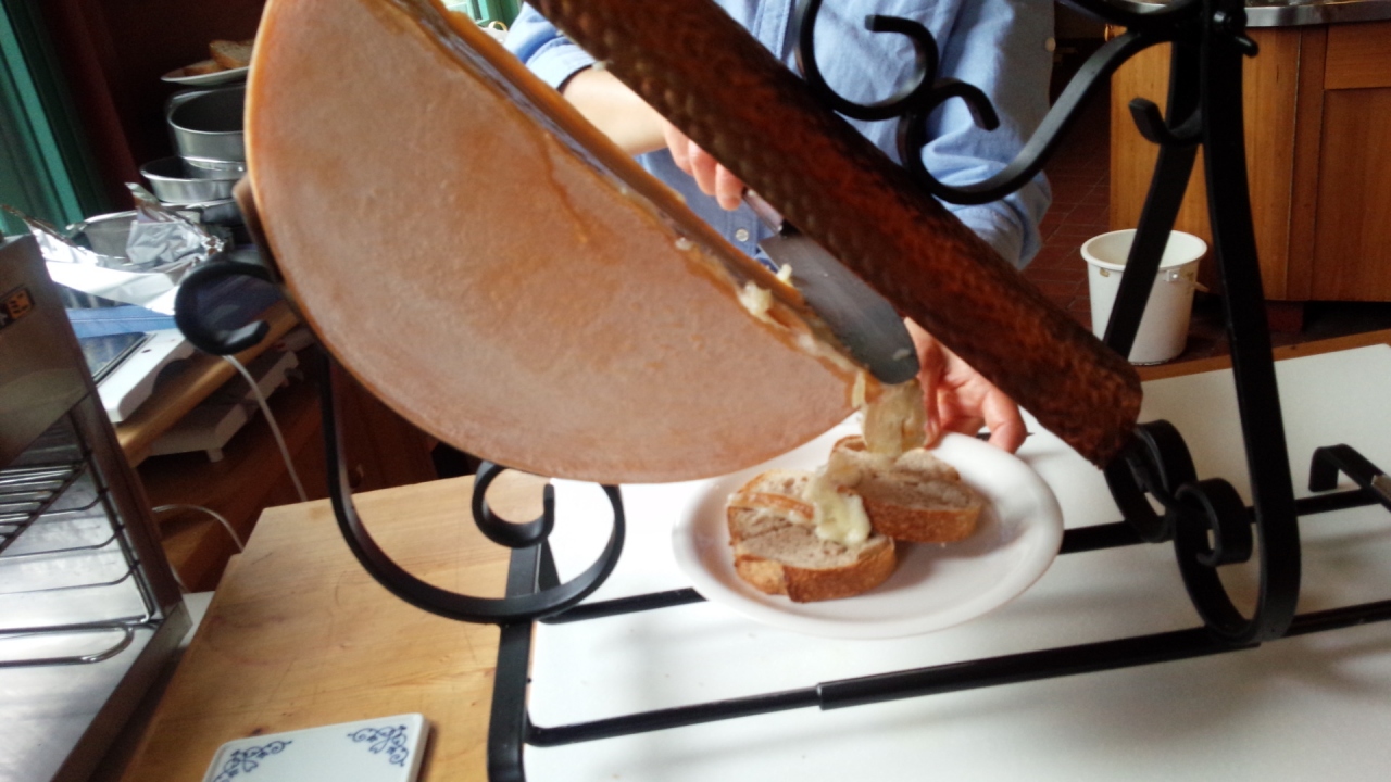 パンやジャガイモにラクレットストーブという専用の機械で溶かし落として食べる。