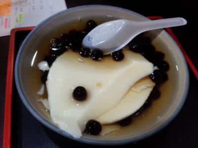 豆腐に蜜とタピオカがかかった冷たいデザート。