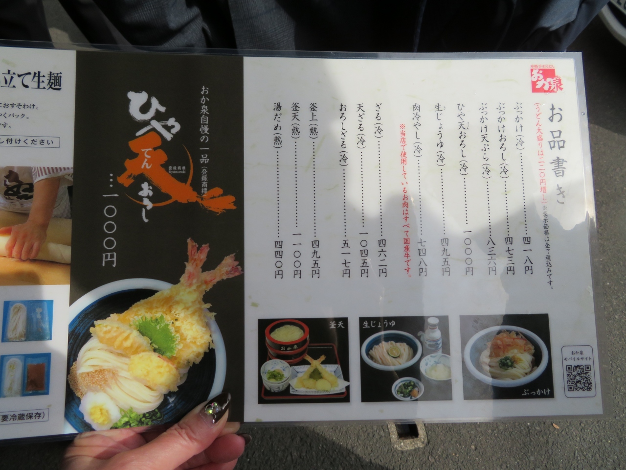 マイカーで松山へ行く途中にランチで寄りました。瀬戸大橋を渡り、坂出ICから15分位で到着。丁度、正午だったので、裏の駐車場に止めました。平日ですが、20人ほど行列ができていました。店の外で注文を言い、20分くらい待ちました。店内に入ってからは10分程度待ったでしょうか。名物のひや天おろしは、インスタ映えバツグン。讃岐らしい、腰のあるうどんで天ぷらは、さくさくと美味しいです。税込千円ですが、量的にもお腹いっぱいになり、納得のお値段です。