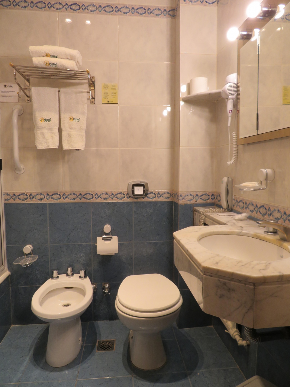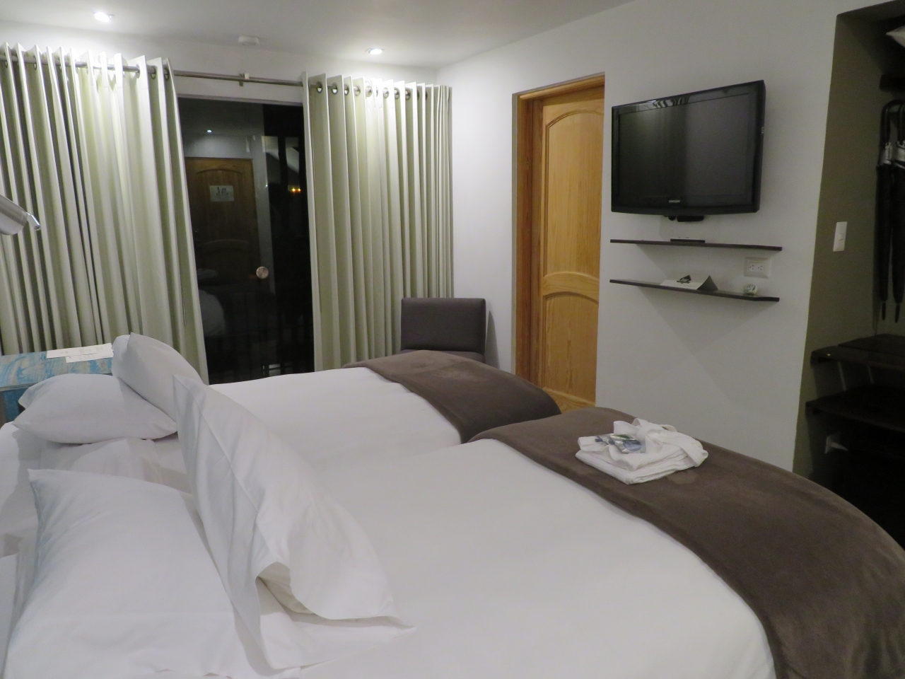 南米ツアーでひとりで宿泊しました。添乗員が言うように、立地は良く、部屋もこじんまりとまとまっています。バスタブが無いのは残念ですが、坂に沿って棟が3つほどあり、足の悪い方には面倒です。レストランは素敵でした。朝食も種類が豊富で美味しかったです。