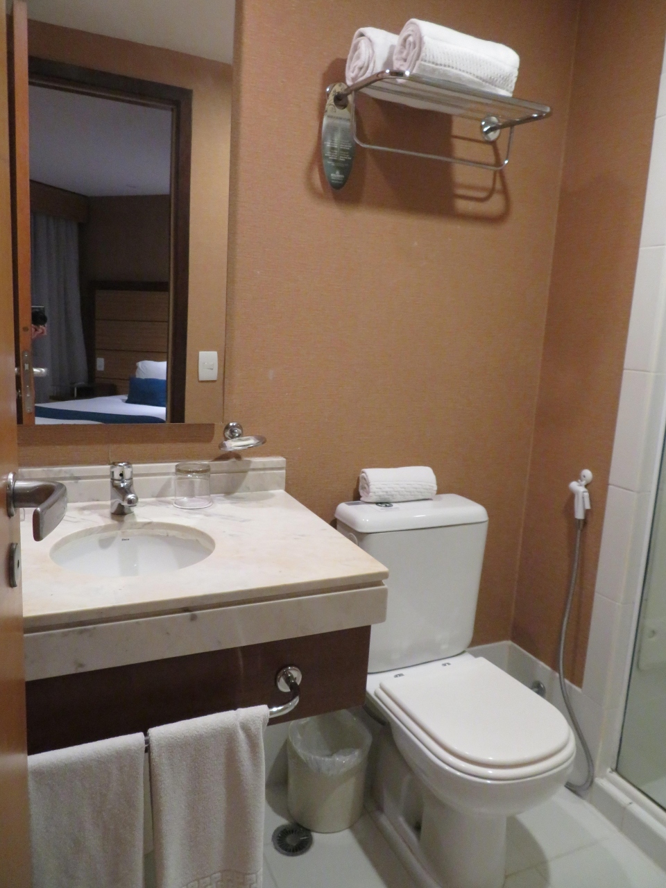 南米ツアーで宿泊しました。玄関は広くてリゾートホテルぽいです。お部屋は白を基調としていて清潔感があり、グットです。バスタブは無く、シャワーのみです。イグアスの滝観光時はバスタオルを持ち出しできるのでとても便利です。貸し出しは1階の売店横で無料です。