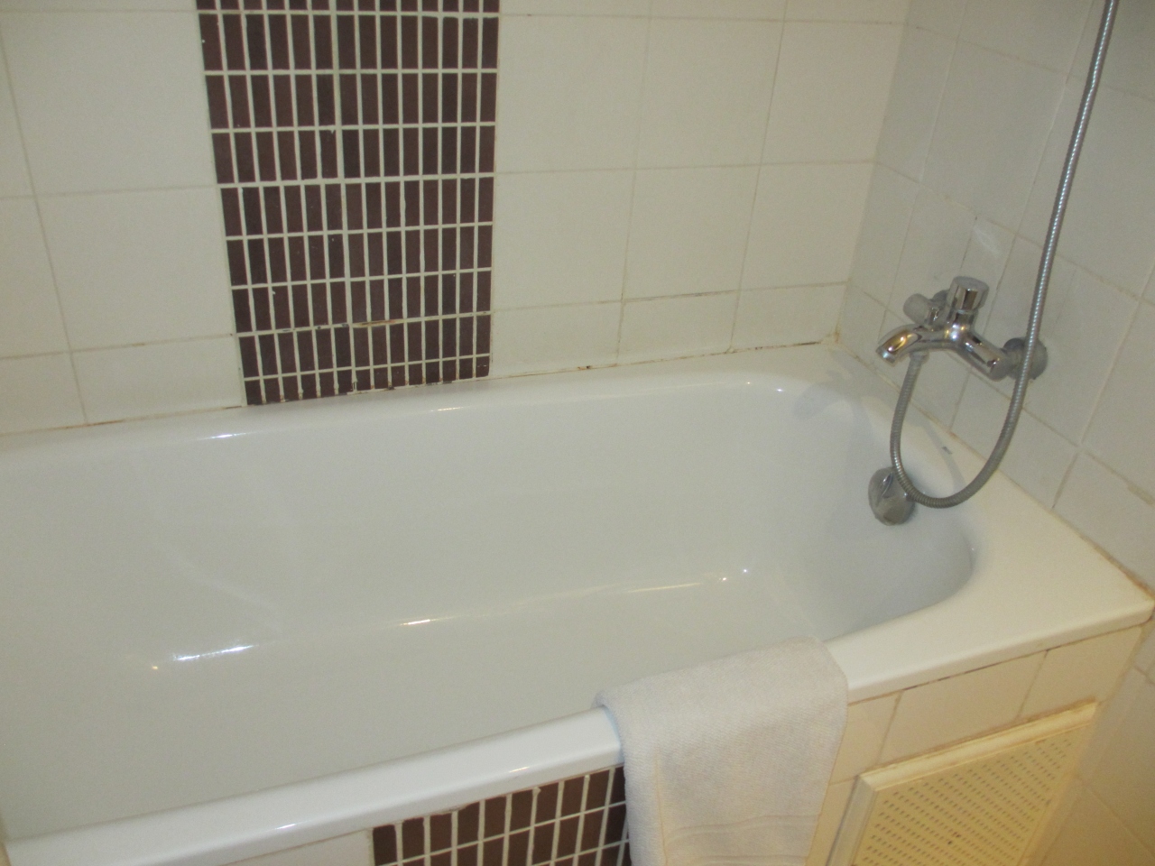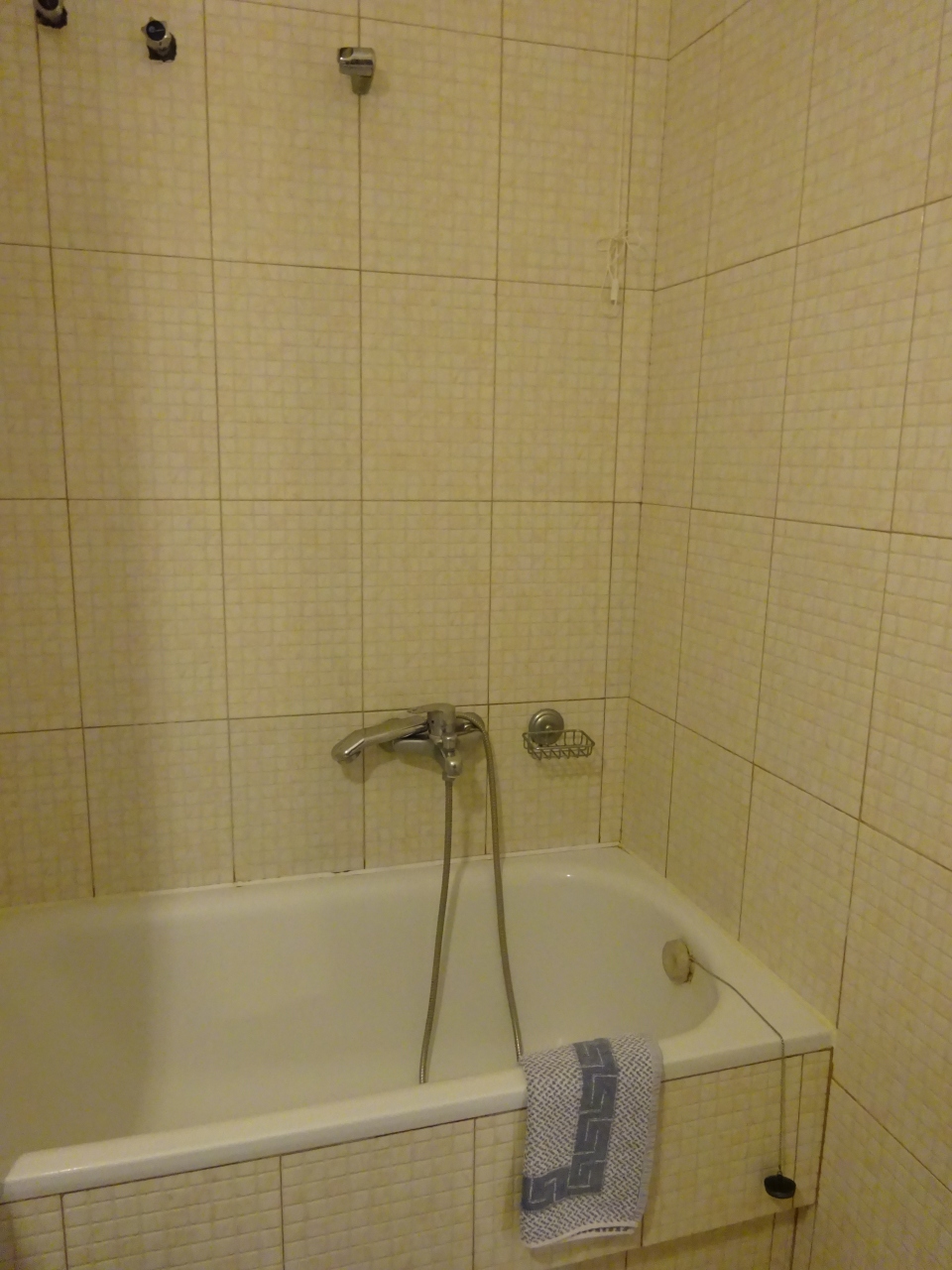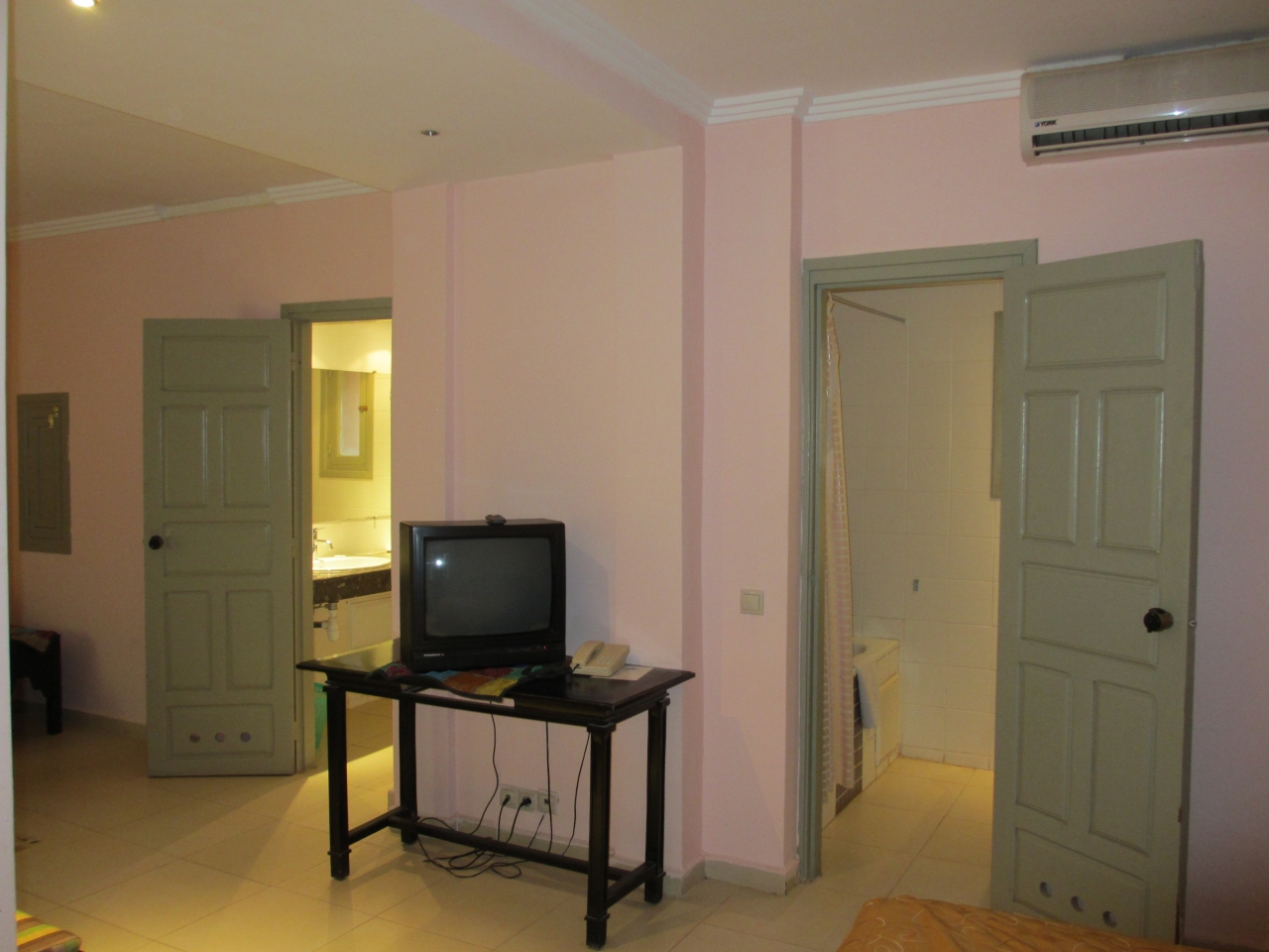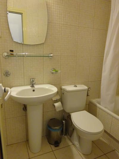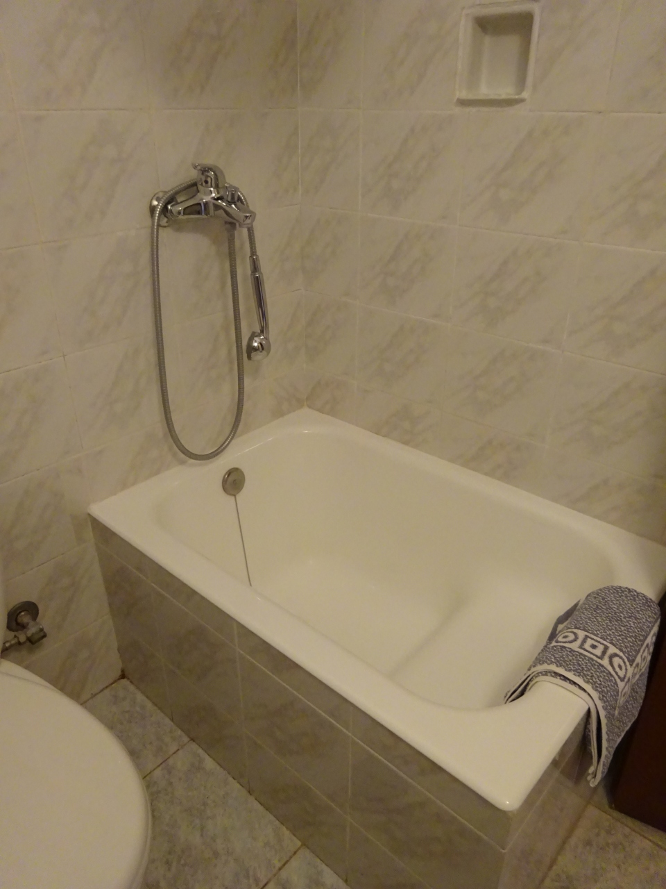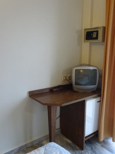 バスルームとトイレが独立しています。TVはブラウン管の古いタイプです。- 旅行時期
