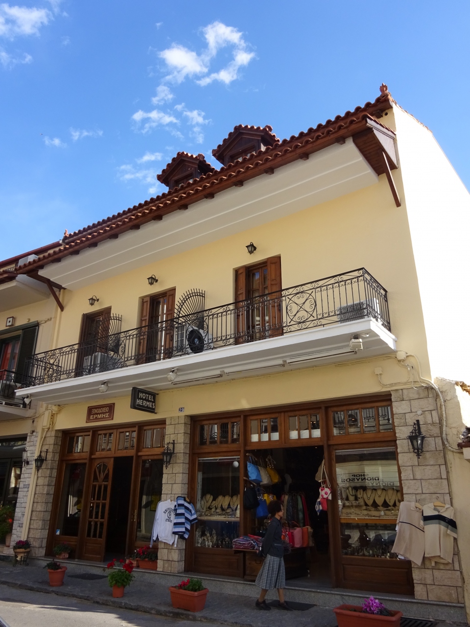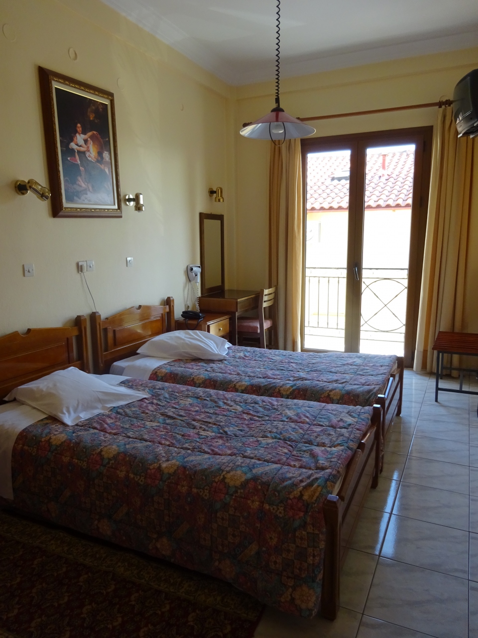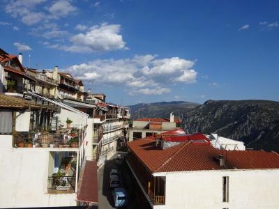 町の中心、真ん中に位置するのでお買い物や食事には便利です。テラスからはコリント湾と渓谷の絶景が見ることができます。眺望が望める部屋には限りがあるので、カテゴリーをしっかり決めておく必要があるでしょう。ツアーで宿泊したため、シービューでしたが、階層が低かったため、向いの家でほぼ何も見えませんでした。部屋は極狭でシャワーのみでした。