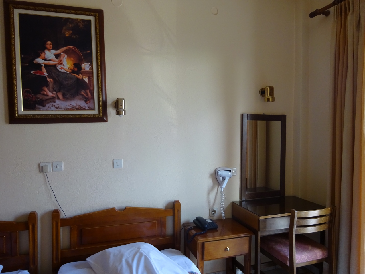 ツアーの最終日に一泊しました。ギリシャ周遊の旅行でしたが、他のホテルが悪すぎたせいか、快適に過ごせました。道路に面した部屋だったので、少し騒音が気になりましたが、反対にライトアップされたリカトビスの丘が見え綺麗でした。Wi-Fiはロビーのみです。