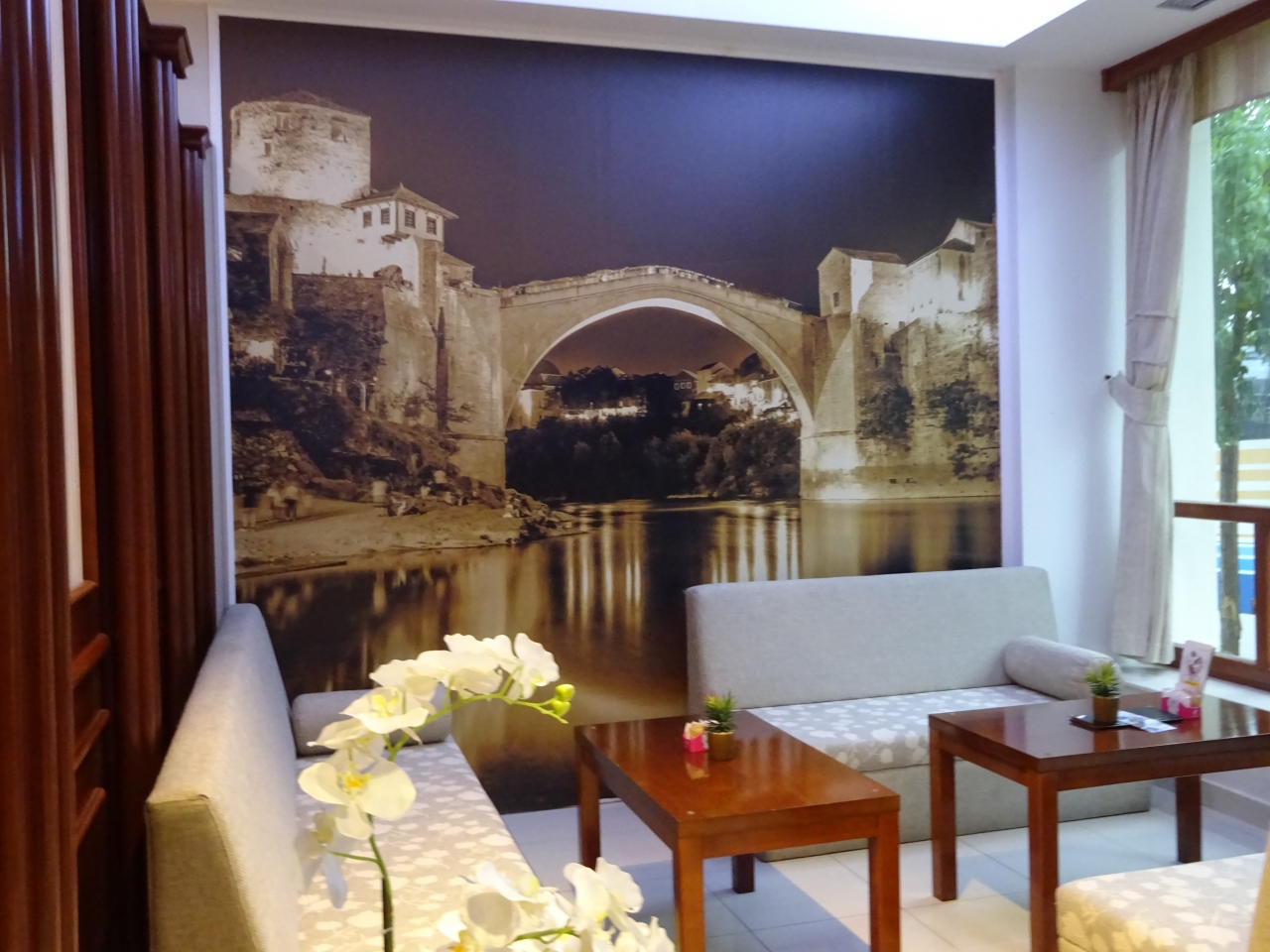ツアーで1泊しました。オパティアは海岸のリゾート地のようで、道路沿いにはたくさんのホテルがあり、その中のひとつのようです。シーズンオフだからでしょうか?1Fのレストランはガラガラでした(素敵なイタリアン)お部屋はリノベーション後なのでしょうか、壁紙も美しく、天井も高かく、カーテンが素敵でした。