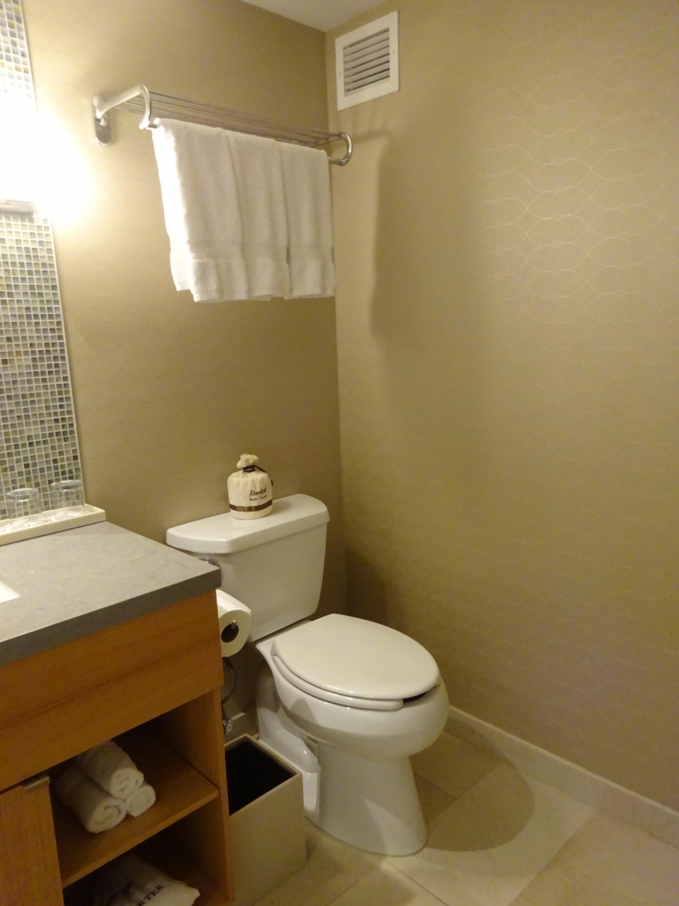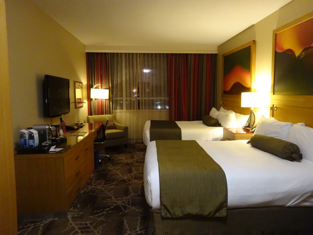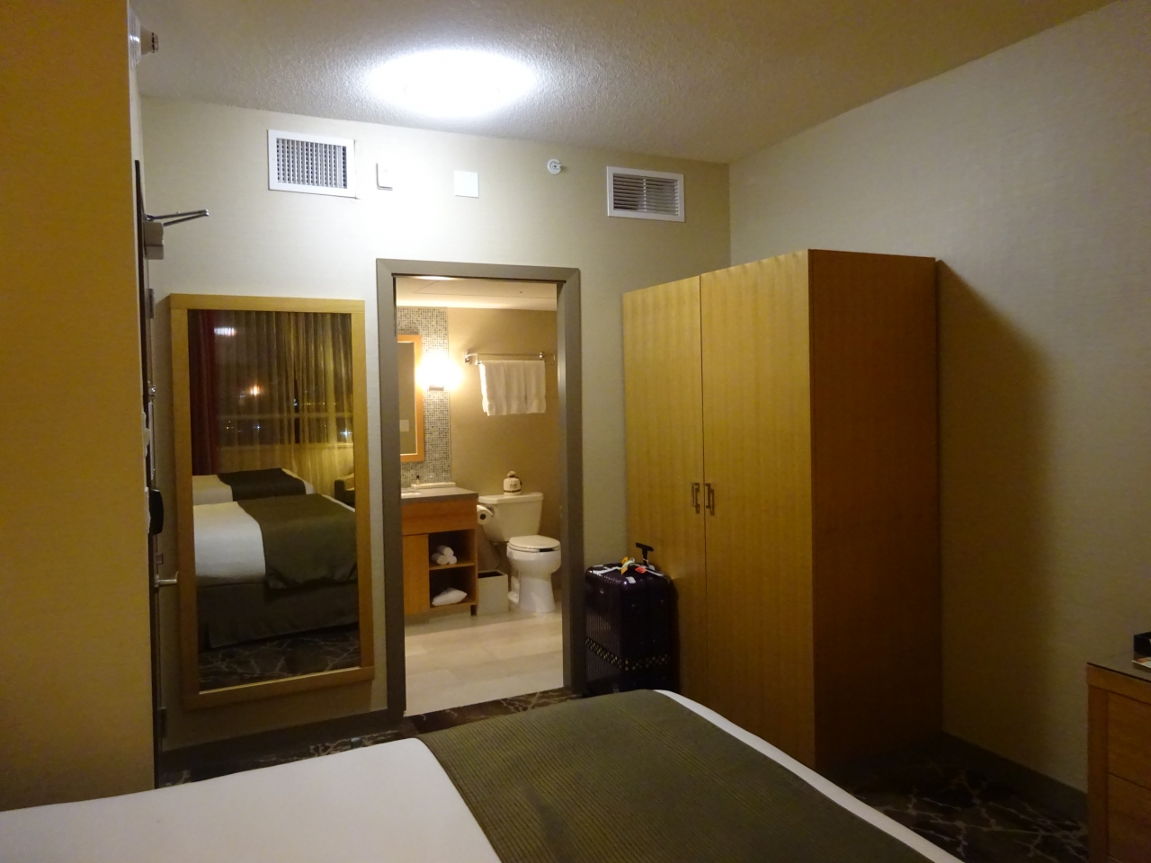 ツアーで宿泊しました。スイート&カジノ棟とホテル棟に分かれます。ホテル棟に2泊しました。ホテル棟はスカイトレインに4階の連絡橋から直結。ホテルとカジノ棟は道路を挟んで4階の連絡橋でつながっています。カジノ棟にはレストランと売店、スタバがあります。Wi-Fiは無料、ブッフェレストランはなかなかクレード高いです。