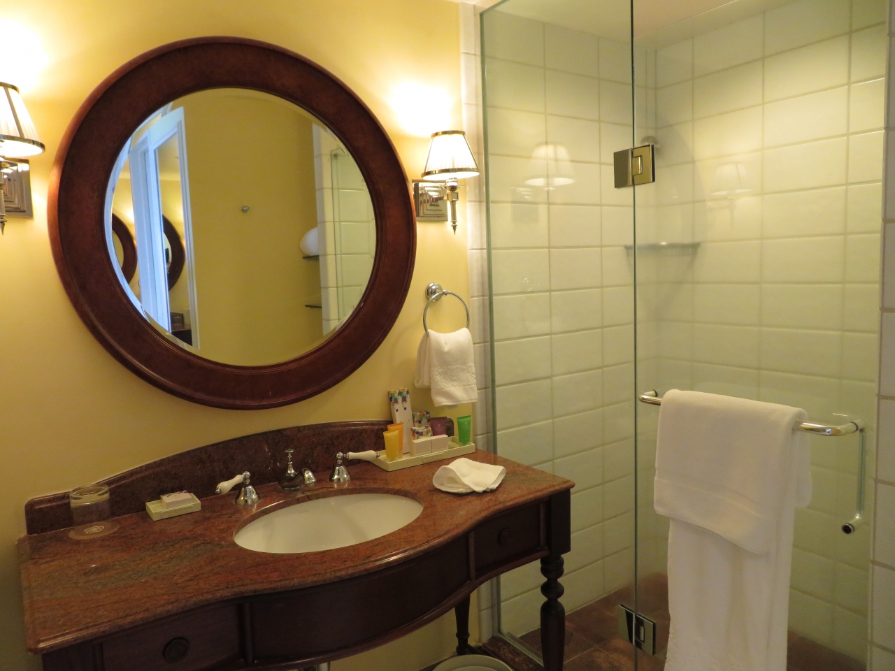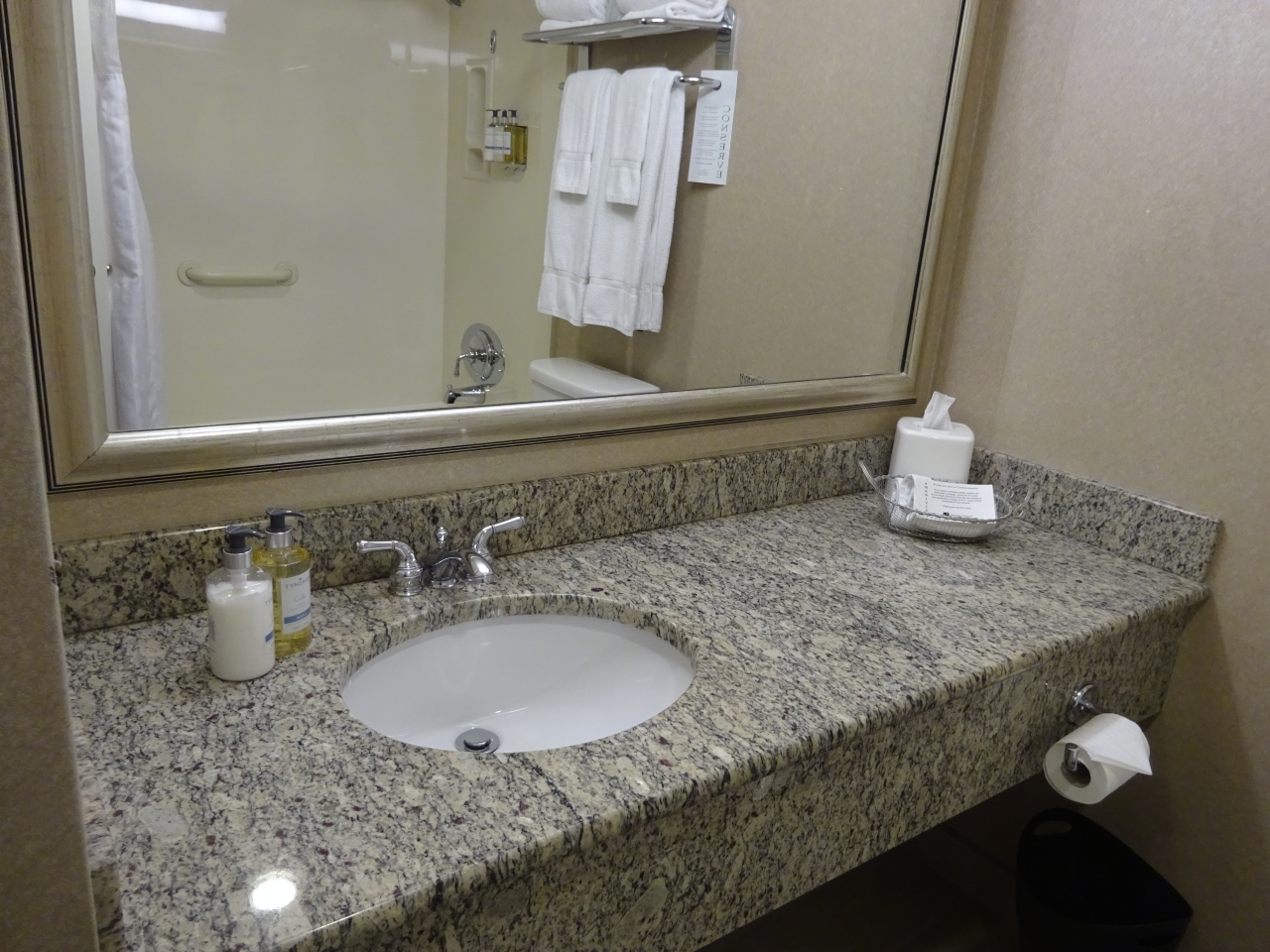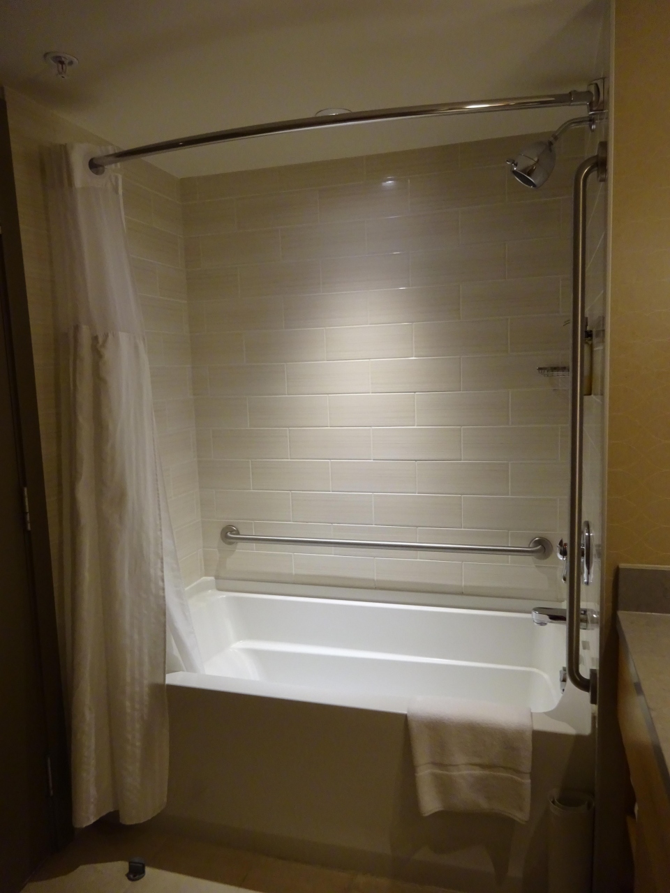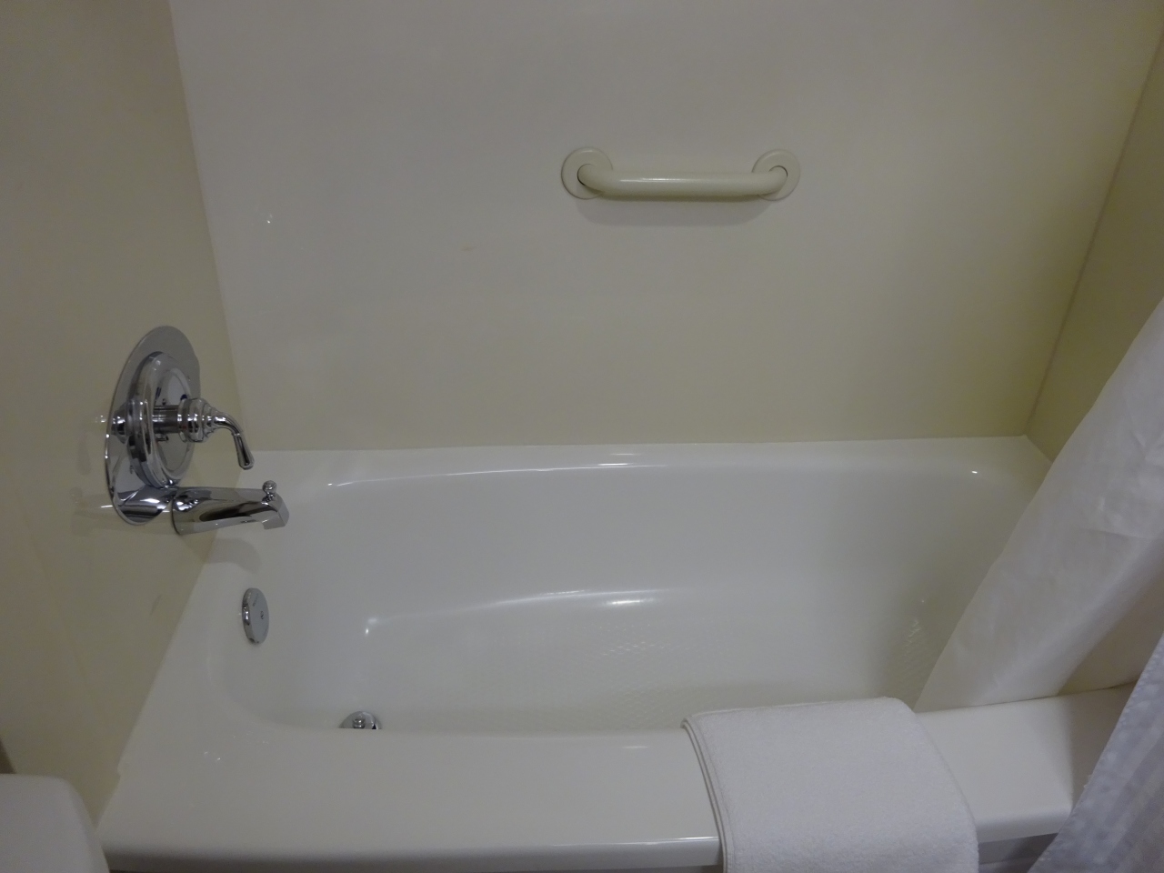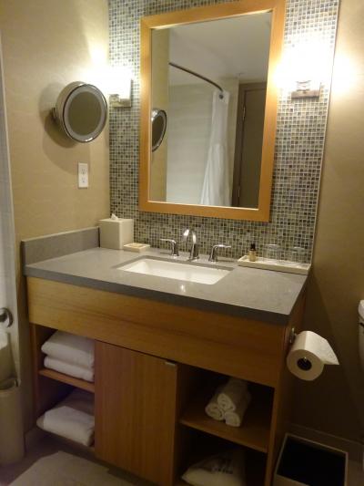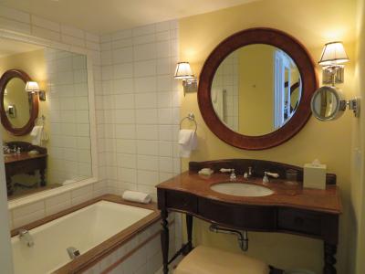 バスルームはお部屋に比べて少し狭いです。近くにセブンイレブンもあり、州議事堂も近いです。- 旅行時期