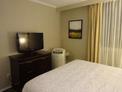ツアーで1泊しました。二人掛けのソファーにクイーンベット。簡易キッチンとダイニングテーブル。キッチンにはレンシレンジ、コーヒーメーカー、ワイングラスなど一通り揃っていました。ベッドルームがもう一つあり、空気清浄機もありました。Wi-Fi無料。