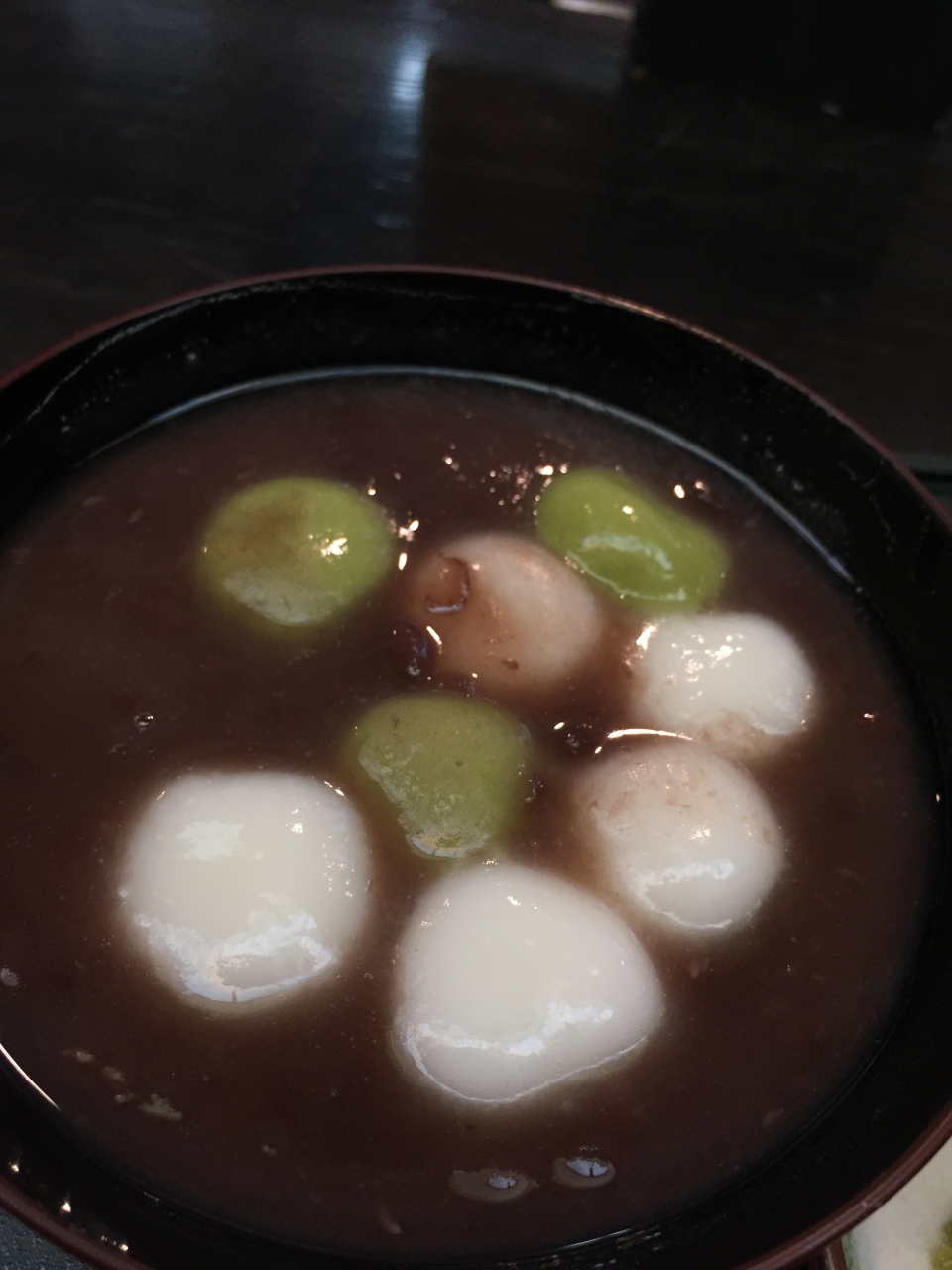 箸で白玉をつかもうとするとツルツルすべるので、スプーンいただけますかと声を掛けるとニコリともせず、無言でスプーンを渡されました。