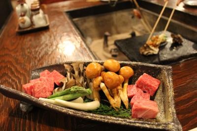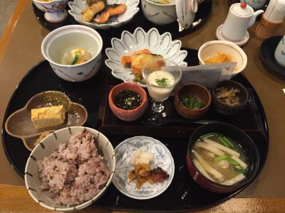 ご飯は山の幸です。きのこや川魚、飛騨牛が出てきて美味です。