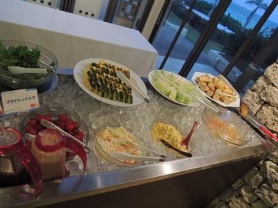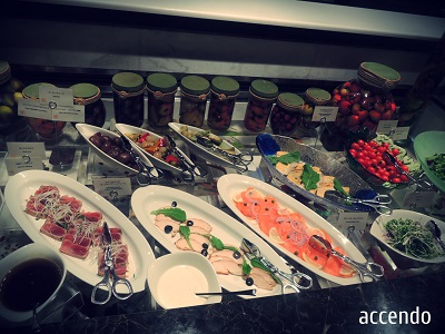 前菜ブッフェは種類も多く何度でもいつでも取りに行っていいとの事。
