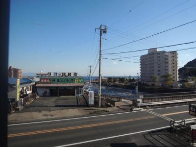 2階の窓際の席に座りましたが道や家を隔てた向こう側に部分的に海が見える!という感じです。