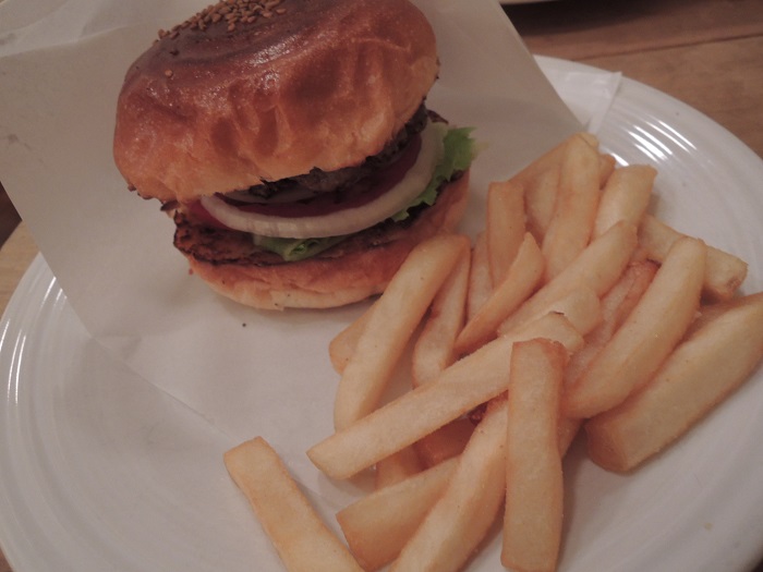 ハンバーガーは小さめですがお肉は分厚くてジューシー。