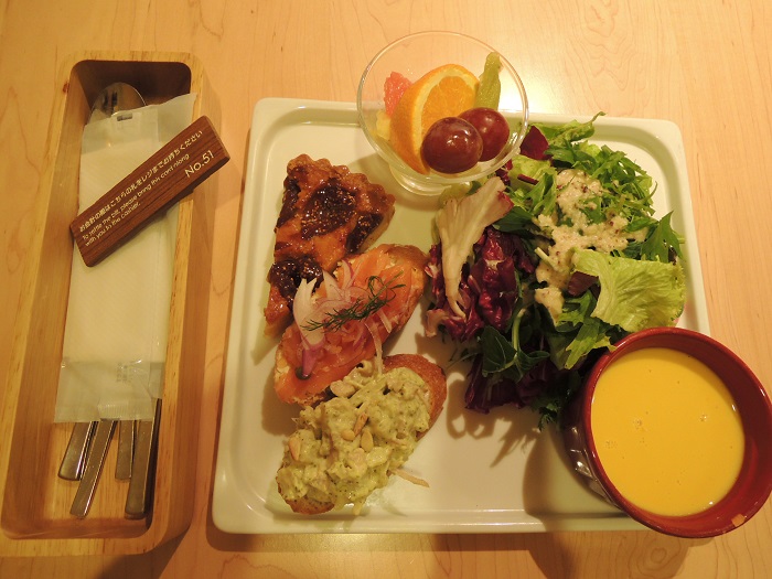 サラダやスープにバゲット(サーモンなどが乗っている)など色々食べられて女性ウケは良いと思います。