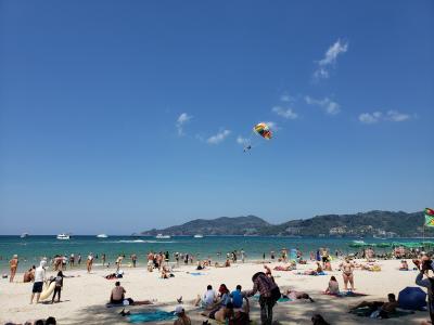 プーケットのパトン地区の海岸です。パラセーリングで楽しんでる人たちもい...