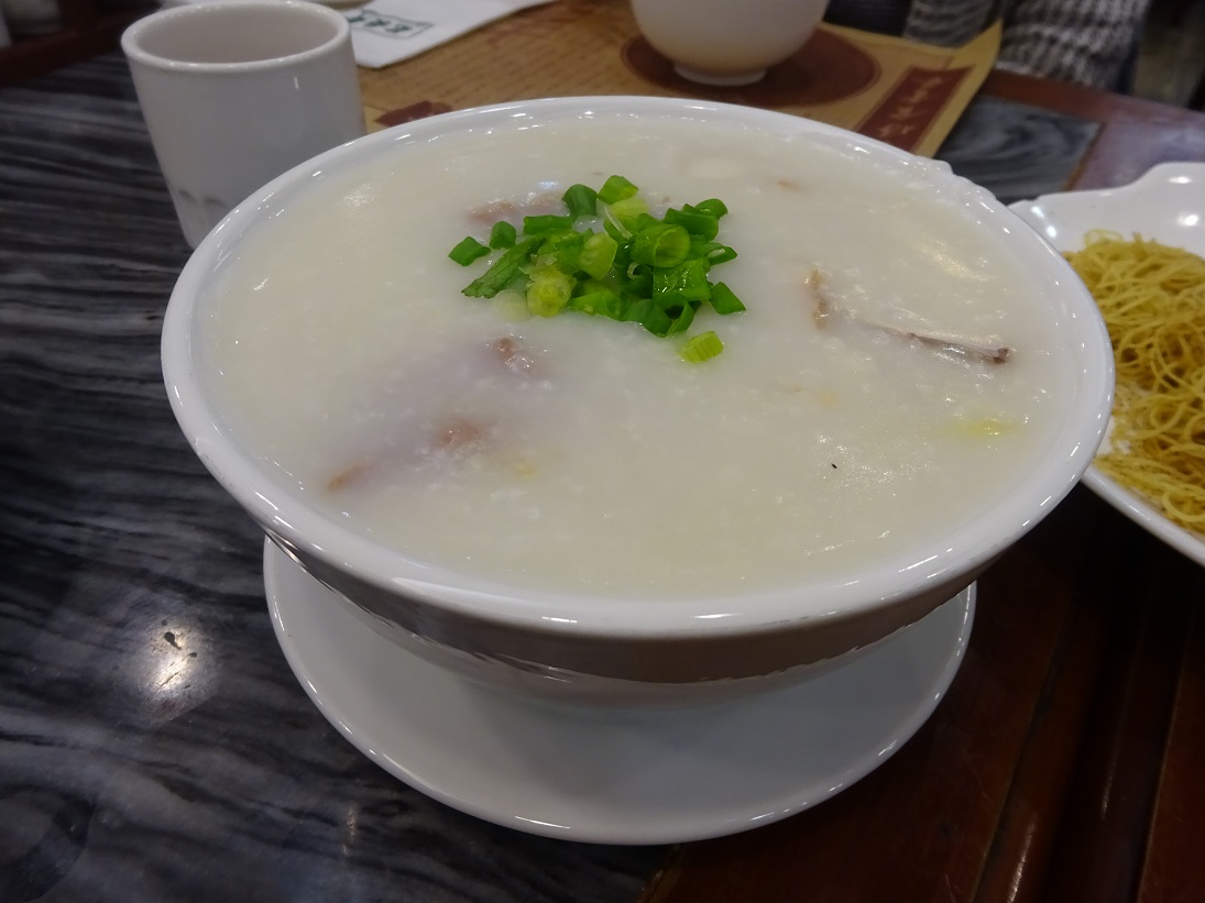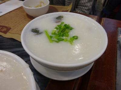 貝柱の粥とピータンの粥、そして蝦子撈麺を注文しました。