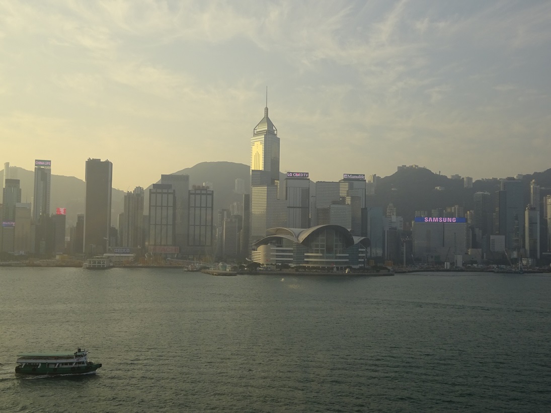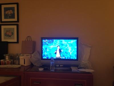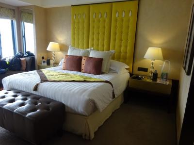 チェックインを済ませ、部屋へ通されると、写真の通り素晴らしい部屋でした。清掃は隅々まで行き届いており(聞いた話では、一日2回は清掃しているとか)、アメニティグッズも高価で、テレビの横にはフルーツの盛り合わせと箱入りのチョコレートまで置いてありました。何より、希望通りのハーバービューの部屋であることに感動しました。