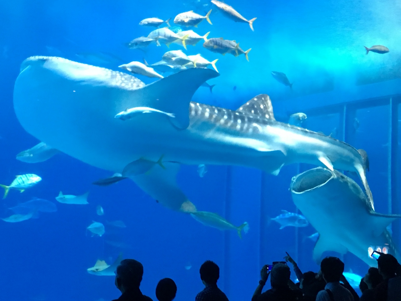 ジンベイザメが泳ぐ黒潮の海は、絶対に見るべき。大きな水槽で優雅に泳ぐジンベイザメを見ているだけで、日頃の疲れが癒されます。