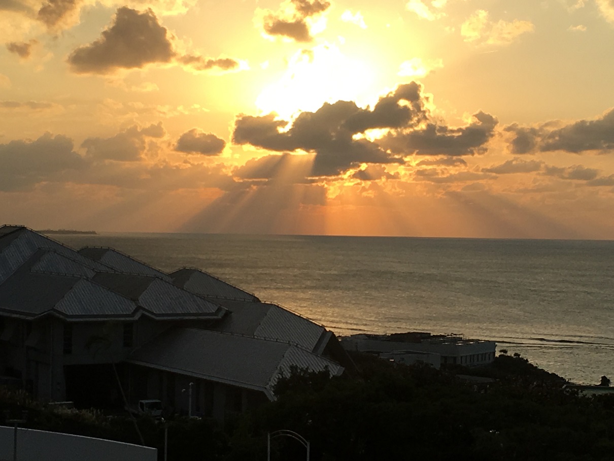 客室から見た海はとてもきれいで、沈みゆく夕陽などは、言葉で言い表せられないくらいのものです。