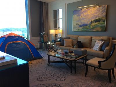 51階のロビーへ行くとチェックインデスクが二つあり、我々は日本人の女性の方が対応してくれました。その方の話の中で子供用にテントを部屋に置くことができるがどうしますか?っと言われて我々はビックリ。そんなこと聞いてくるホテルは、初めてだったからです。もちろん、子供を喜ばせたいので、お願いしました。(ちなみに息子は、7歳です。)