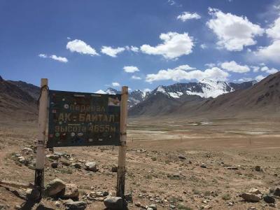 パミール高原。アク・バイタル峠、4,655m超え土色の風景が続く。