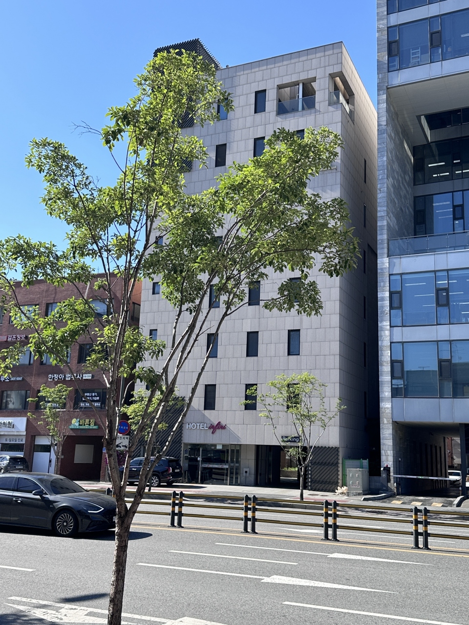 空港からは電車に乗ってすぐです。電車を降りると陸橋がホテルの前まで来ているので、道路を渡る必要がありません。客室は少し古いです。一階に食べることができるところがありますが、駅に行けばスターバックスや夜はたくさんの食べ物やがあります。南に少し歩けば市場やスーパーマーケットがありました