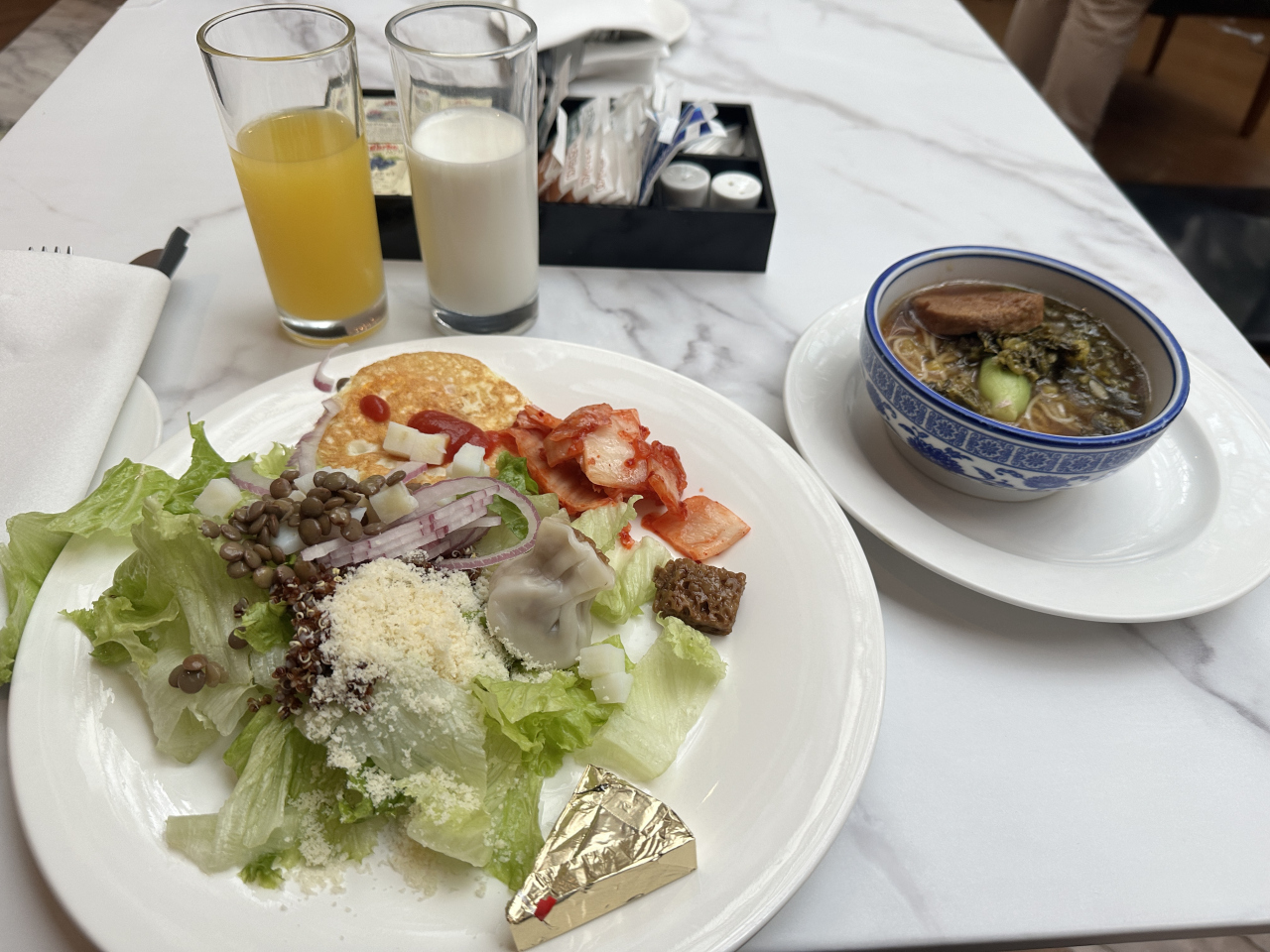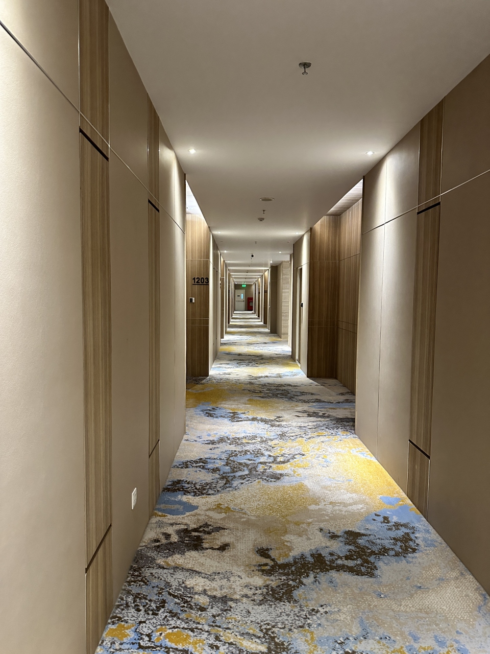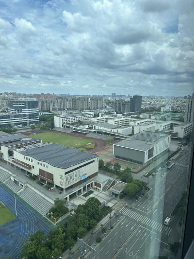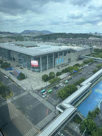 お客さんと一緒の宿泊先でした。上海虹橋空港からタクシーで到着しました。どこに行くのもタクシーで移動しました。近くにはたくさん食べるところがありましたが、私はホテルで朝食をとりました。以前はヒルトンだったようです