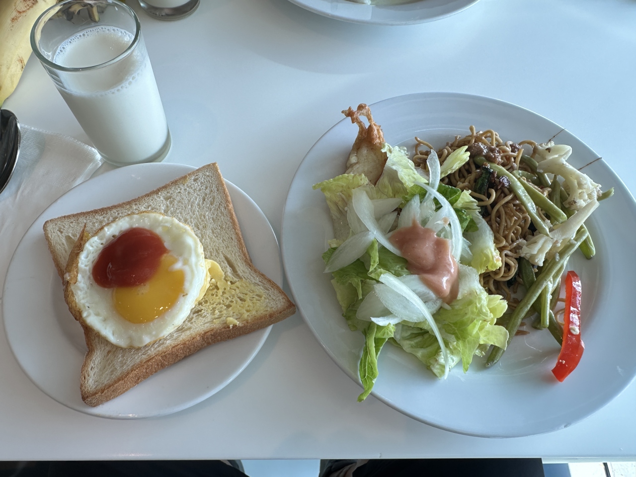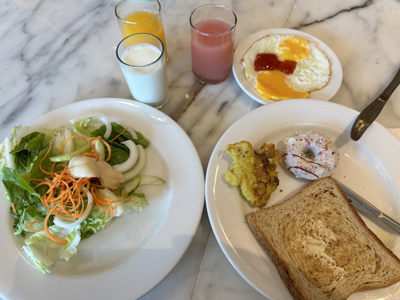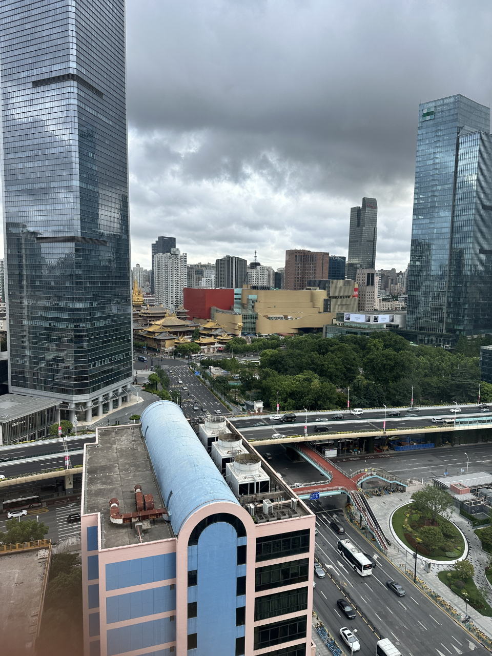お客さんと一緒の宿泊先でした。上海虹橋空港からタクシーで到着しました。どこに行くのもタクシーで移動しました。近くにはたくさん食べるところがありましたが、私はホテルで朝食をとりました。以前はヒルトンだったようです