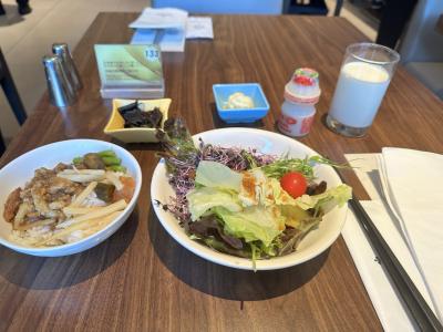 展示会場がお金をだしてくれました。二泊。朝食付きです。朝食は福岡の会社らしく、下にある梅の花で食べます。屋上にプールとジムとバーがあります。夜景がきれいです。BTSの駅直結なので雨でも問題がありません。