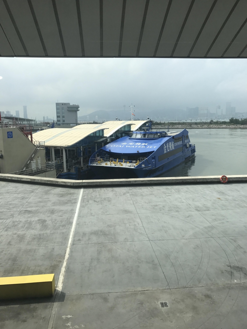 港澳大橋が完成しましたが、やはりフェリーがよいですね。これは尖沙咀の廣東道のターミナルから澳門に行くCotai行きです。いろんな船があります。コタイに行くのであればこの船が安いです。青い船かっこいいですね