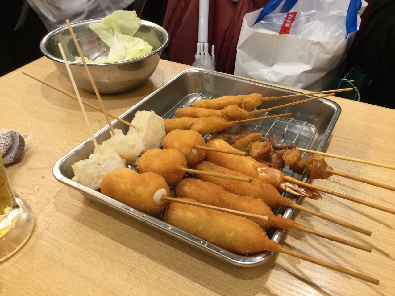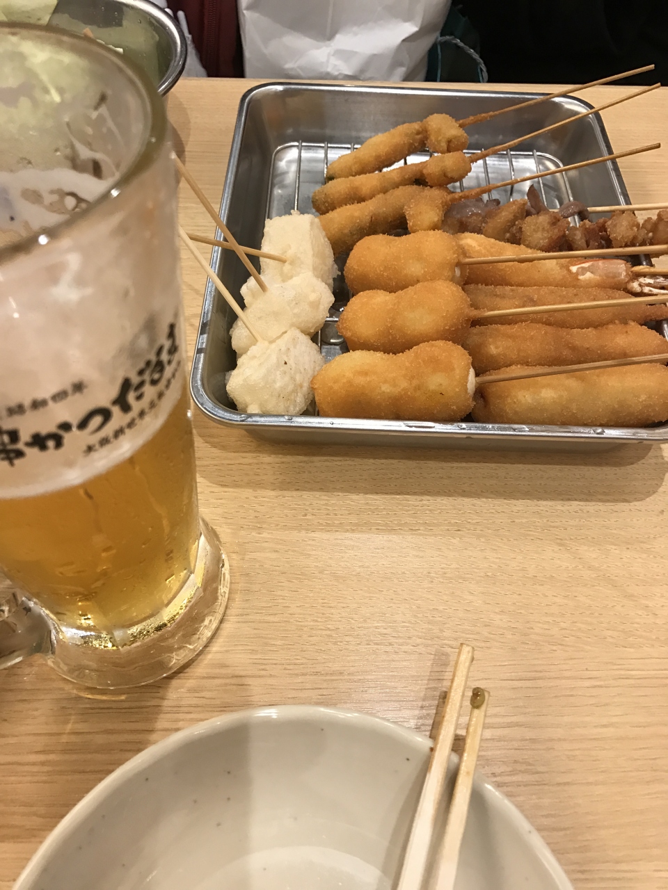 久しぶりに先輩2人とミナミのカラオケで会い、そのまま昼から串カツだるま。昼からたくさん食べて、飲み、またいろんな話をしました。店の中にテーブルは少ないが、混む時間を避けたのでゆっくり食べることができました。