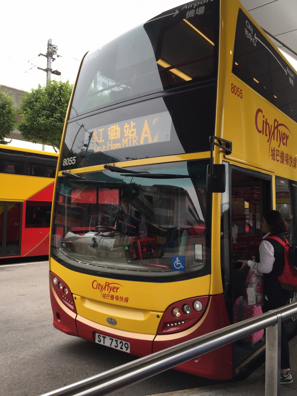 香港から日本に行く途中利用しました。(当時)空港からはバスで市内に行きます。バスの切符は窓口で購入します。バスに乗るときは、スーツケースは自分でトランクに入れます。市内に入ると順にバス停で止まっていきます。降りるところを間違えることはほとんどないと思います