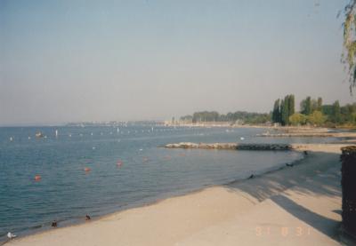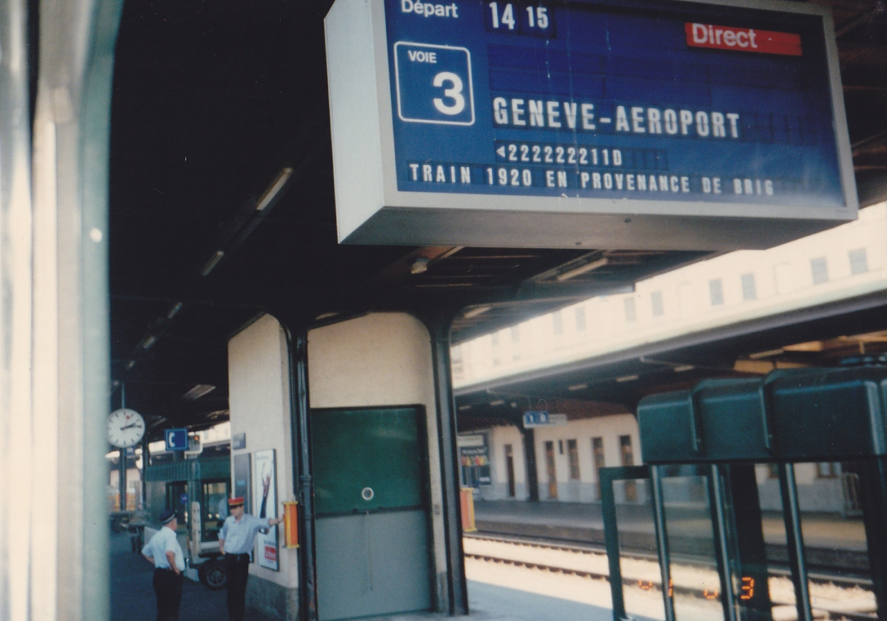 3人でアムステルダムからドイツ、オーストリア、スイスに入り、西へ来ました。パリに行く為に、車と別れ、市内から列車でジュネーブ空港に行きました。ジュネーブ空港の中は、スイス部分とフランス部分があり、フランス部分から国内線