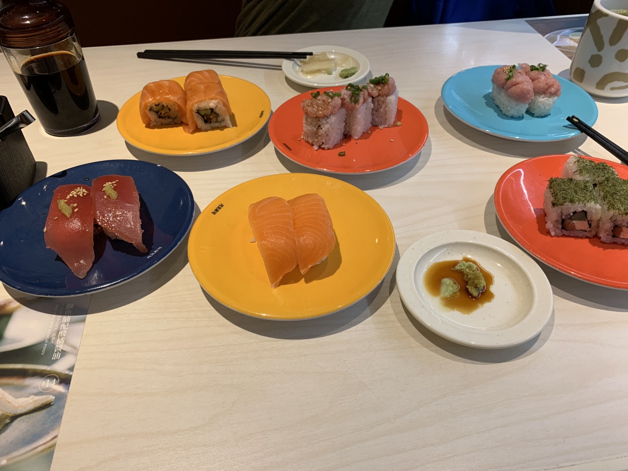 数年前のネズミ問題があってから初めて行きます。当時はほとんどの元気寿司が閉鎖でしたよね。最近は回転ベルトが二段になっていて上の段は新幹線が注文した皿を運んでくれる仕組みになっています。香港での回転すしの老舗です