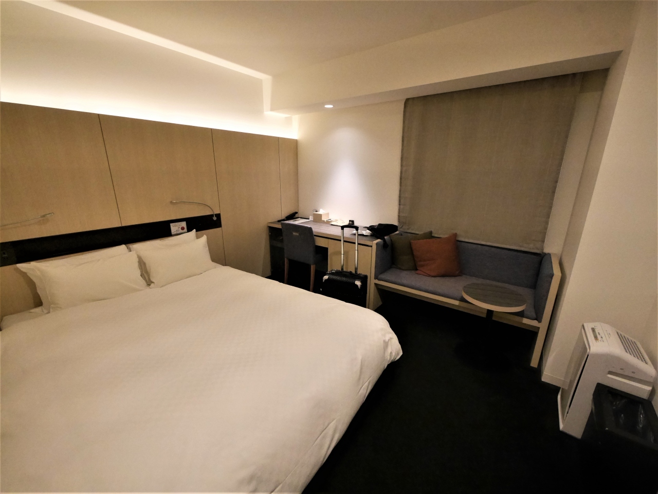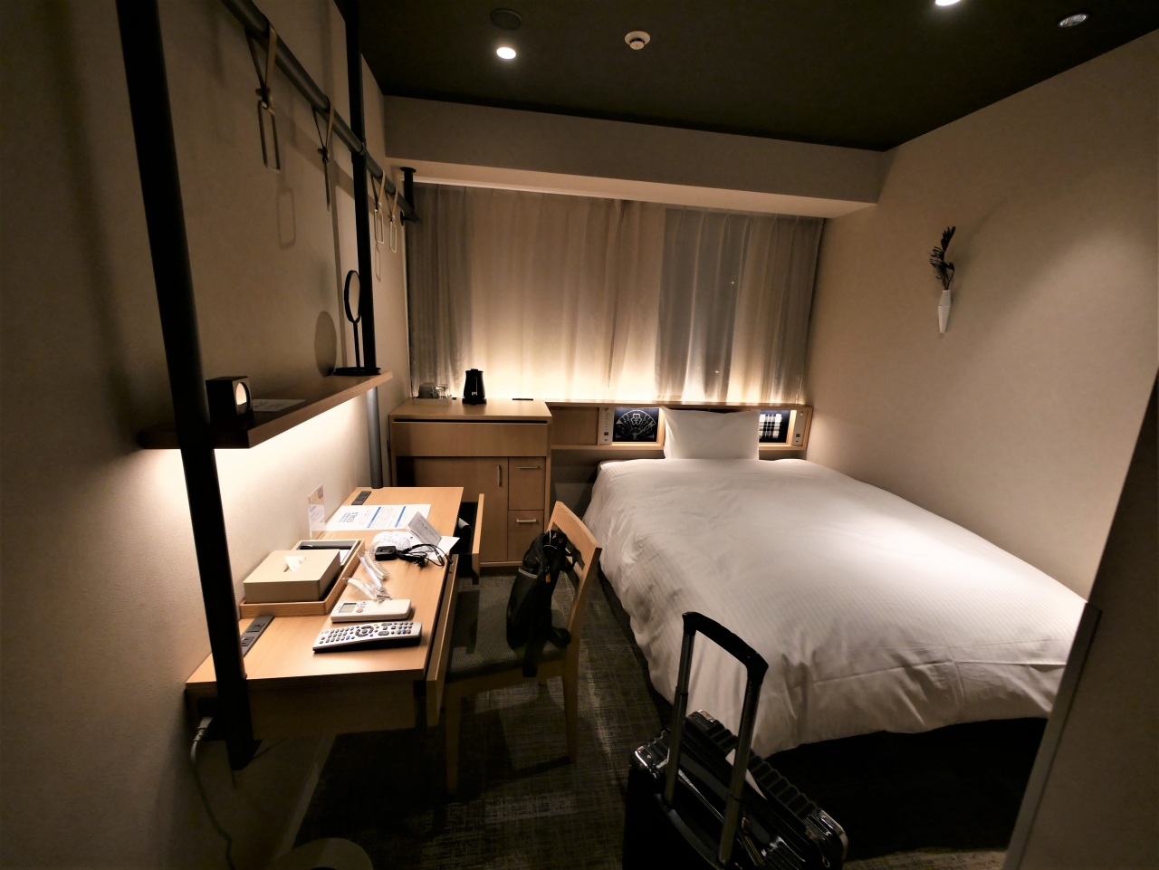 サンルートはどこでも同じようなつくり.コンパクトな部屋だが,ベッドが広いことと,ソファと小さなライティングデスクのあるのがうれしい,朝食も含めコスパはまあまあと思う.サウナもうれしいが,冷水がない.朝食も比較的種類が多い.たべやすいカジュアルな雰囲気のレストラン.1泊8620円