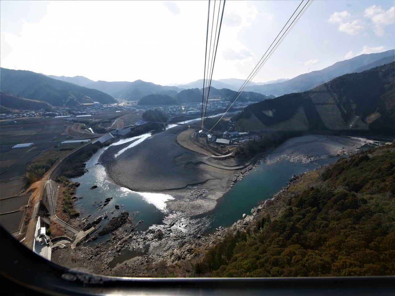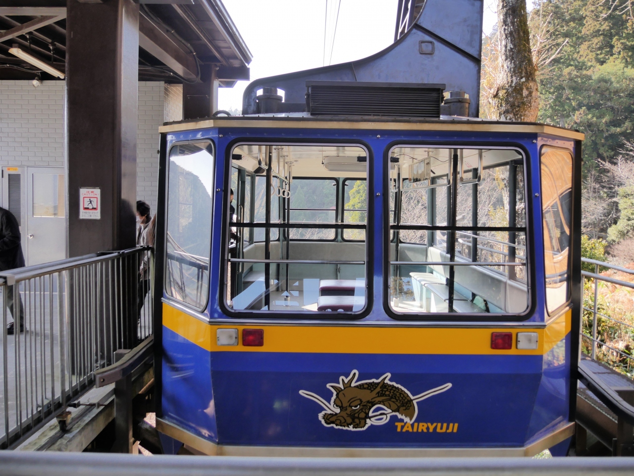 西日本一の長さ 2775m 所要時間も10分かかる.日本一にの長さは苗場らしい.往復2600円とけっこう高い 家族連れだと10000円が飛ぶね.那珂川を渡り上る.一度一つの峰に登ってから(標高563m)太龍寺駅477mにおりる.紀伊水道がよく見る.途中弘法大師像やニホンオオカミ像が見える.伝統の山の海苔ごたえのあるロープウエィ.山の上にある太龍寺の伽藍も素晴らしい