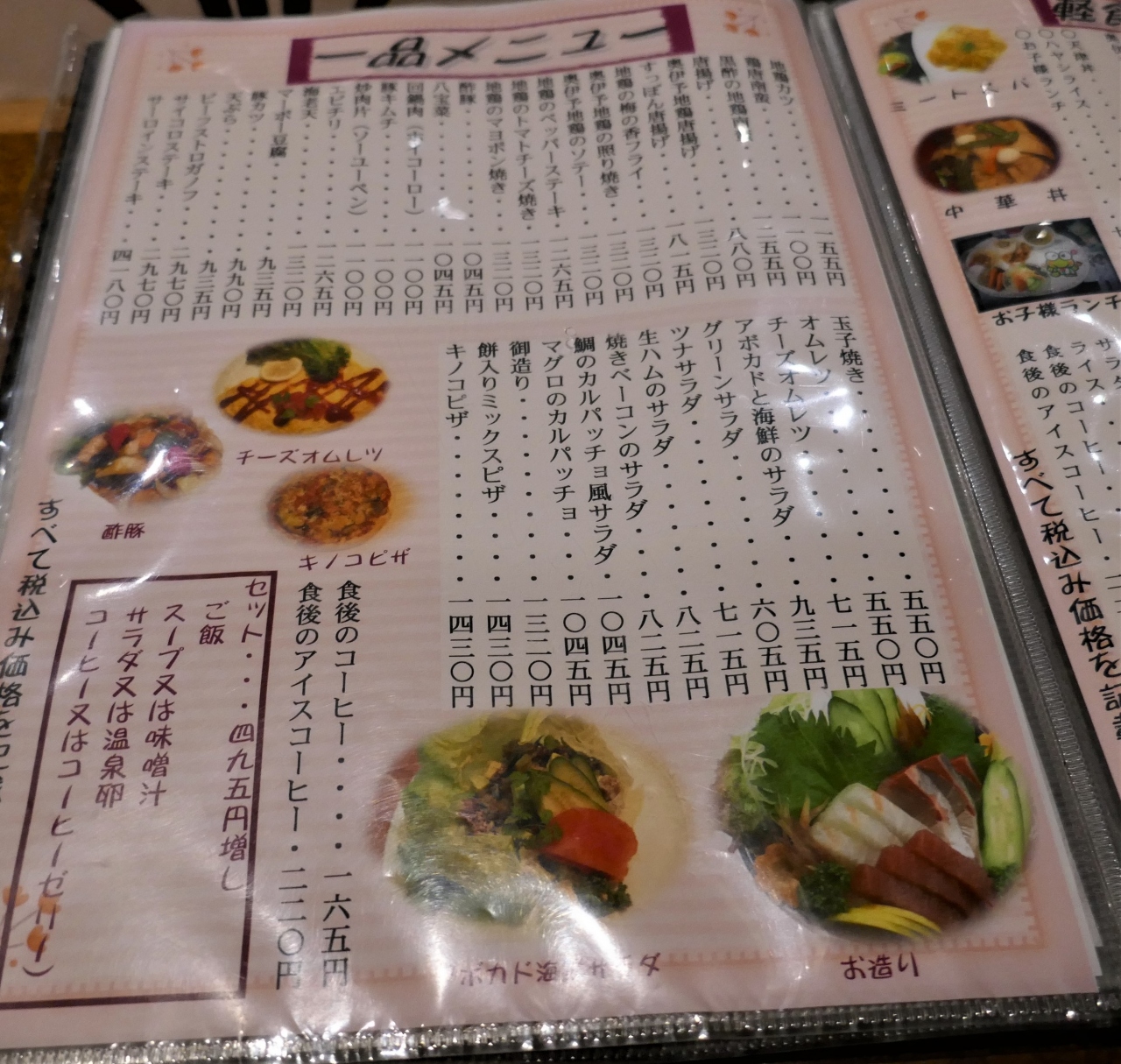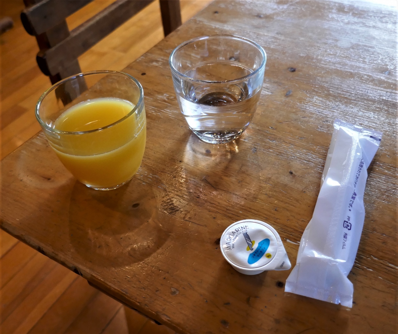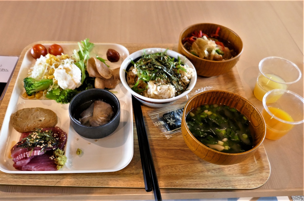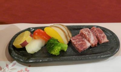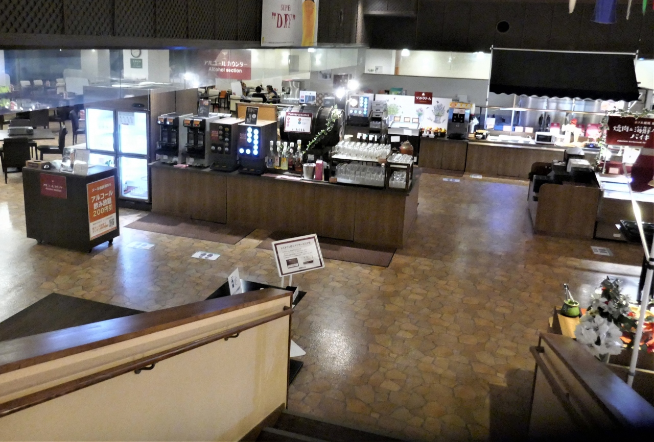クワテルメ宝泉坊ロッジの夕食施設 2000円の食事券をロッジでもらう.まぐろのカルパッチョ 1045円 生ハムサラダ 825円 奥伊予 地鶏の照り焼き 1320円+ライスセット495円 全体に高かった!ビール2杯飲んで4840円 まあ2000円割引があったから大したことないけど,全国旅行支援の特別料金であったかは不明