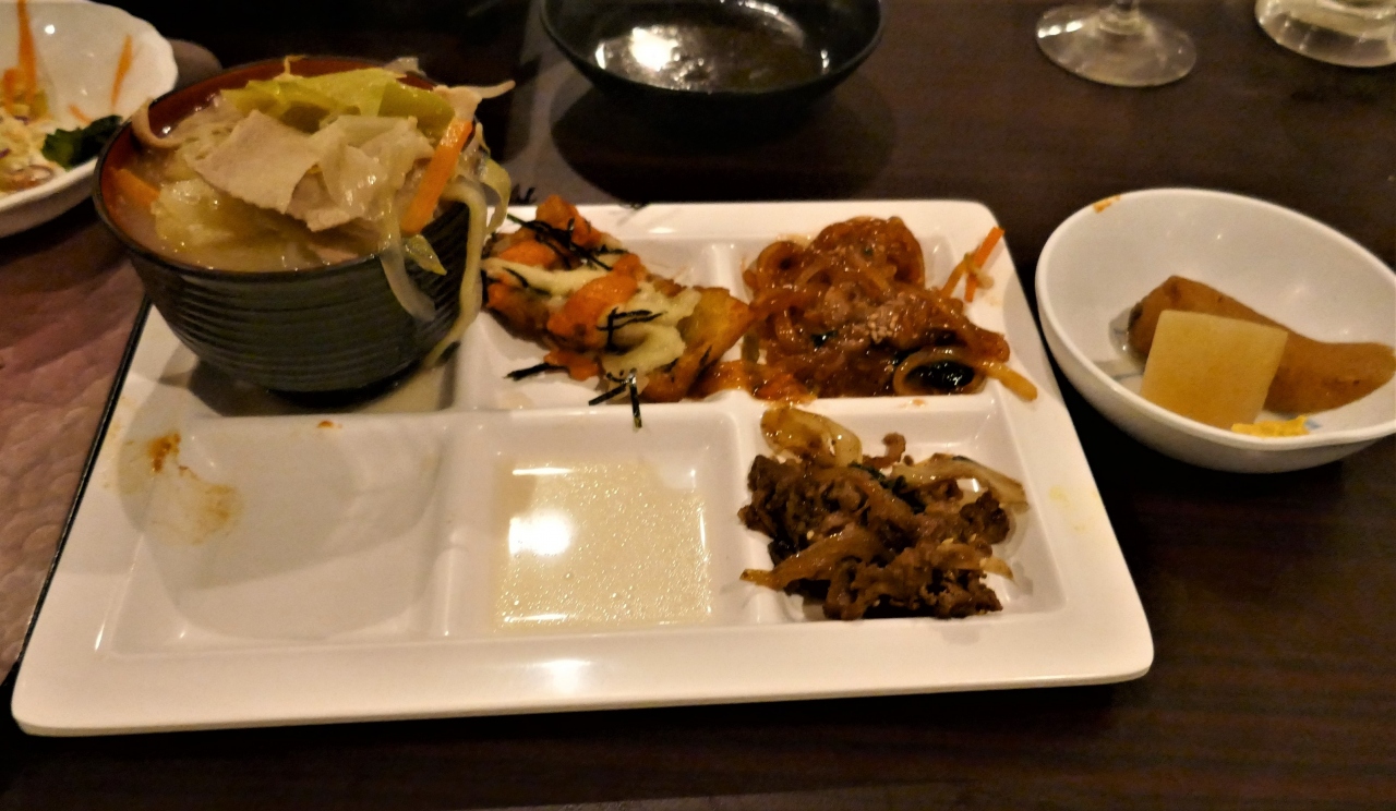 10050円 クーポン4020円で6030円で宿泊 食事券2000円つき 和室 6畳でしずか.ゆっくりとサウナと温泉に入る.しずかでよいロッジだ.しかし12月で結構寒かった.朝食は簡単なものだった.パンとソーセージなど.夕食は隣の食酔坊宝 まぐろのカルパッチョ 1045円 生ハムサラダ 825円 奥伊予 地鶏の照り焼き 1320円+ライスセット495円 全体に高かった!ビール2杯飲んで4840円 まあ2000円割引があったから大したことないけど.