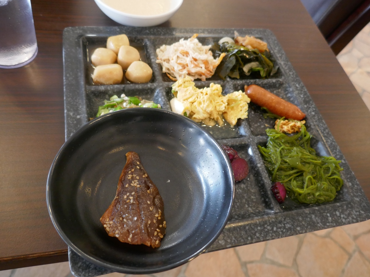 リゾートのホテルの食事は悪いことは知っているが,どうしてもサウナに入りたいとなると泊まれるところは限られる.サウナにゆっくり入る.17788円で旅行支援のクーポンで10000円引き 7788円 ステーキ付きプラン 部屋は和室 ステーキは自分で焼く.他の夕食はバイキングで悪かった 朝食はまあまあ.まあサウナに入りたいし,温泉にも入りたいので仕方ない.