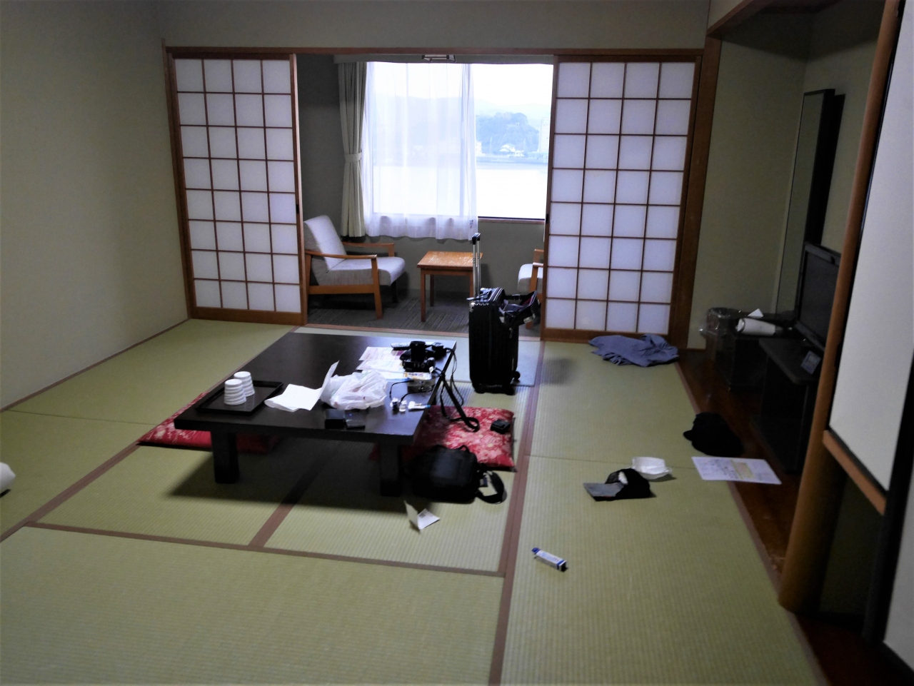1泊朝食付き 和室で税込み8580円 大分に夜到着するときのご用達 このうち国内238の際は仕事だった.和室に宿泊したが,静かで落ち着けるホテルだ.大浴場・サウナもある.朝食はビュフェで標準的かな.三ツ星半というところ.