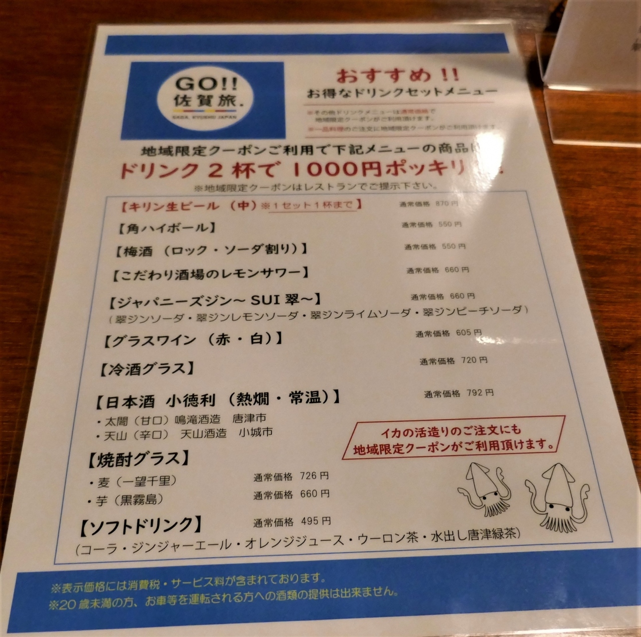 2泊目はホテル&リゾーツ佐賀唐津-DAIWA ROYAL HOTEL 和室 一泊二食付き 15700円 全国旅行支援 3000円があり12700円 2000円のクーポン付だった.夜は会席コースに.夕食朝食ともまあまあ 眺望は良かった サウナがあるのでどうしても大きなホテルに宿泊する.景色はいい,浴衣は各階エレベータ前にあり自分で持っていく.生中2杯で全国旅行支援のクーポンを使う 残りは翌日お土産に ホテルが立ち並ぶ場所にある