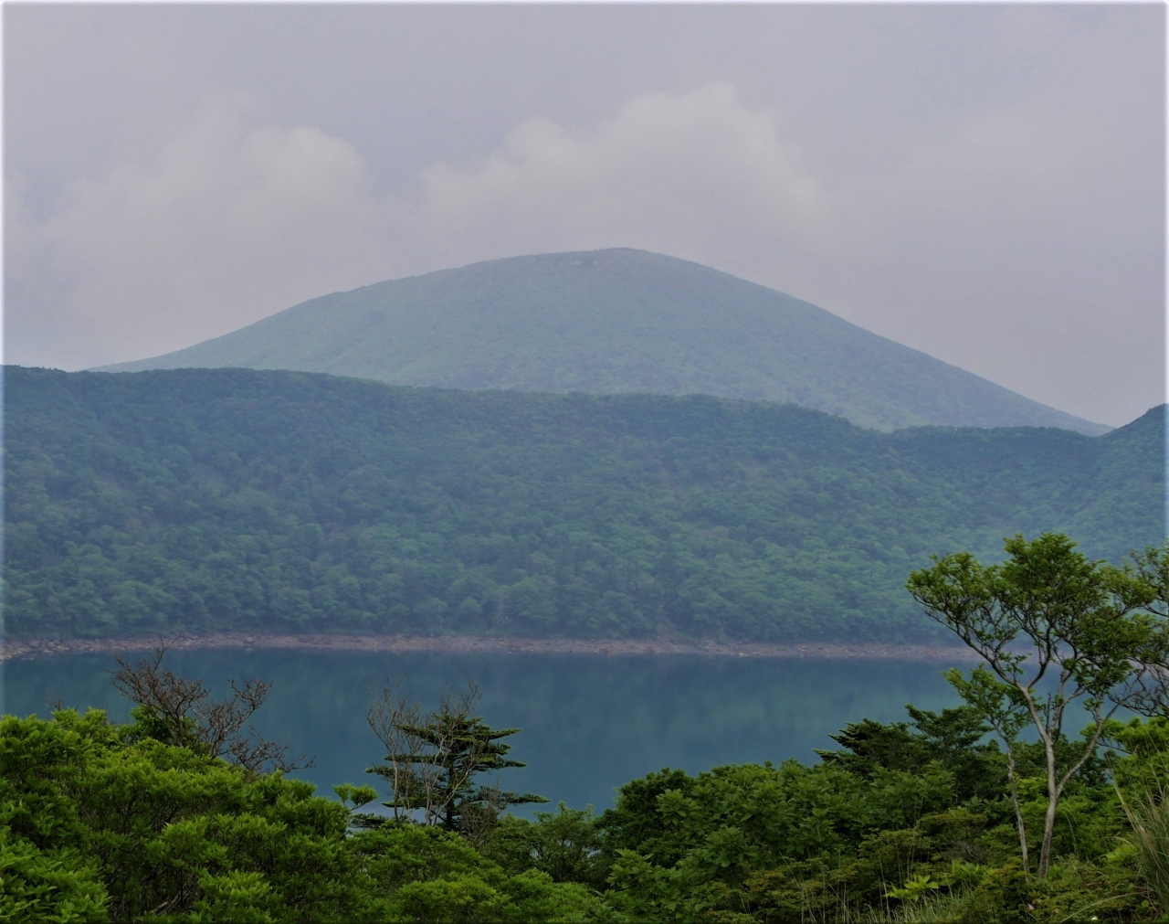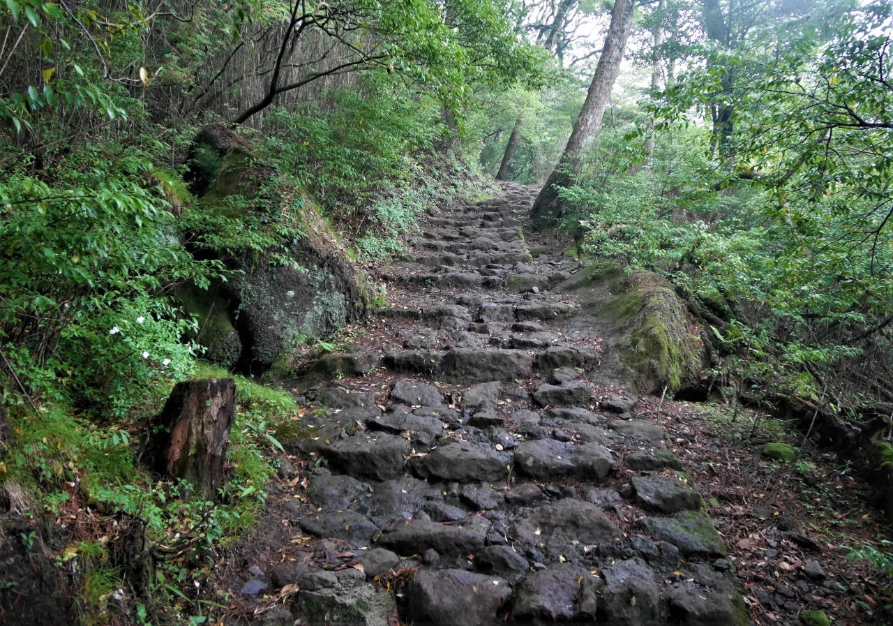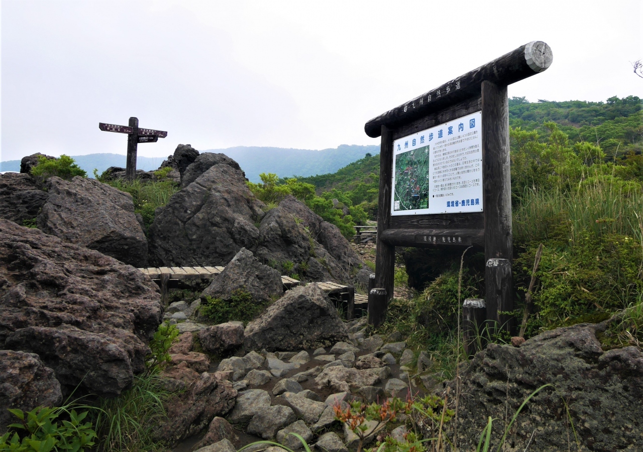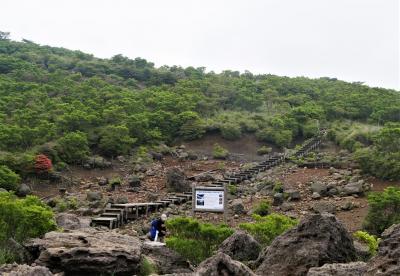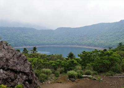 大浪池登山口駐車場に車を停める.大浪池まで1.2㎞ある.まあ片道小一時間ならと登ってみた!雨でぬれている転ばないように注意ながら登る.石畳で整備されているが,急な登山道だ.土のほうが登りやすいと思うのだが!九州自然歩道大浪池に 登り54分だった.カルデラ湖のカルデラの際に出た!神秘的に池が見える.また韓国岳に登る登山者も見えた.雲が多い日だが,待っていたら韓国岳全体を見ることができた.池を見るために登山するにはちょっと大変だね!でも周りは高山の雰囲気.この雰囲気はいいとおもう,下山は37分,登山ほどではないが足に自信があれば登るよい